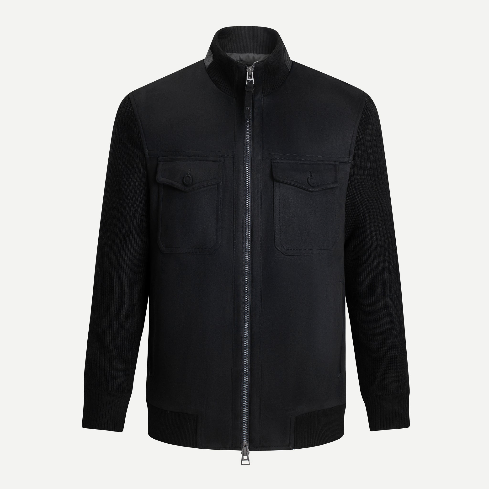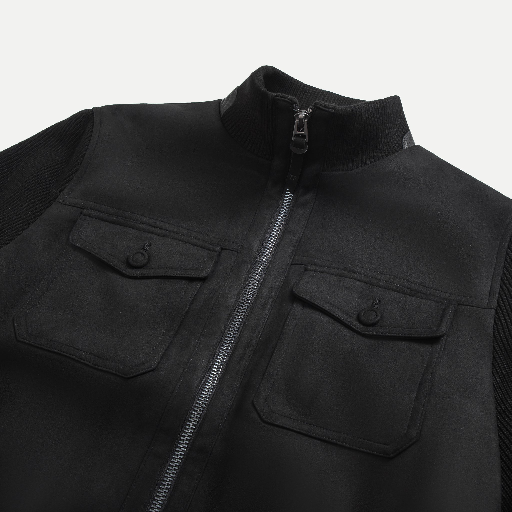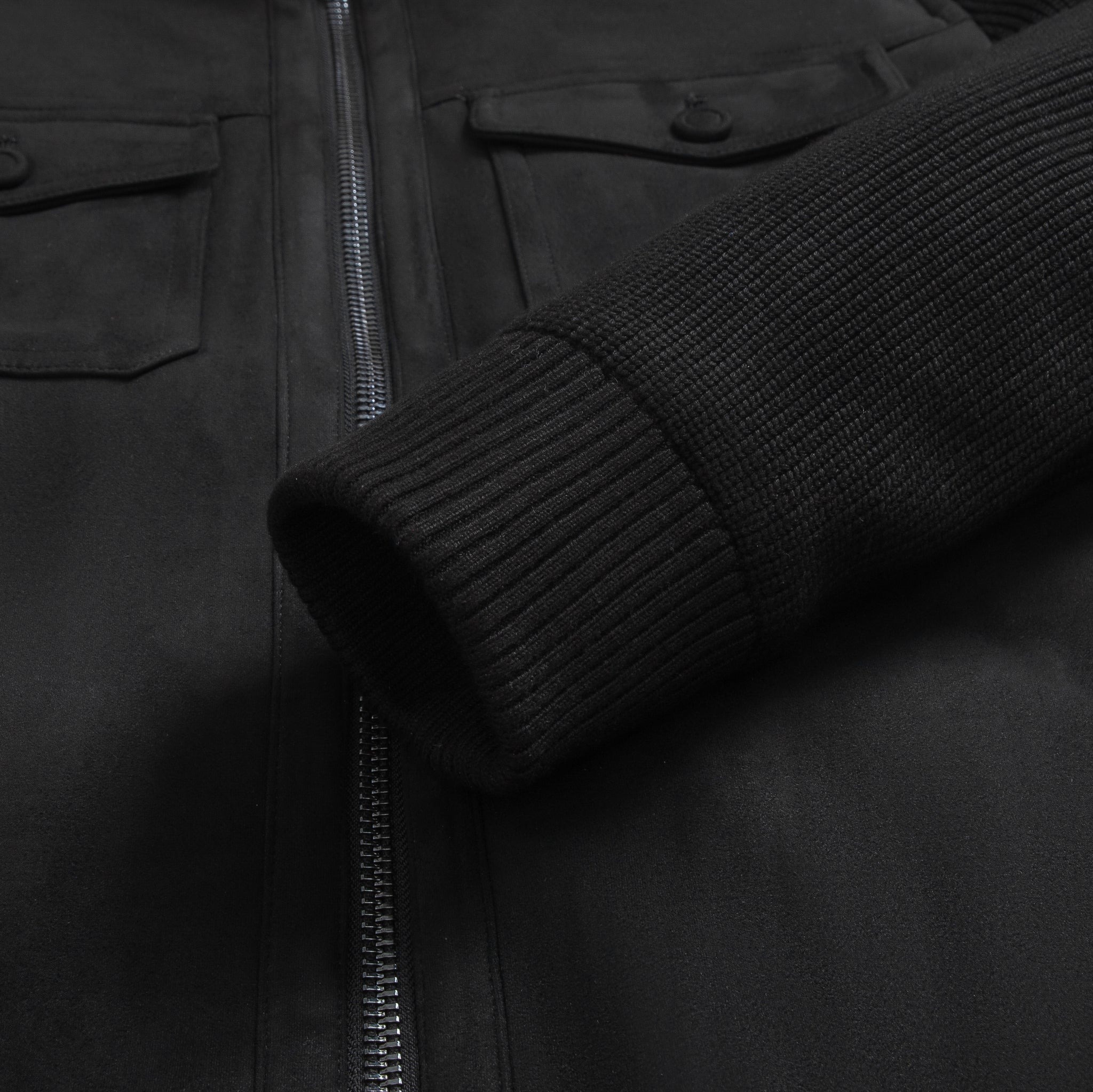 Áo khoác da lộn tay phối len có dáng blouson với cổ trụ , mang phong cách tối giản, sang trọng và dễ mặc. Điểm nhấn đặc biệt của mẫu áo này nằm ở phần thân áo da lộn phối cùng tay và cổ áo bằng len dệt cao cấp tạo nên sự giao thoa thú vị giữa chất mộc và chất mềm, giữa cấu trúc và chuyển động. Cổ áo bo nhẹ, tay áo ôm gọn, kết hợp cùng khóa kéo kim loại ẩn và túi cạnh tối giản. Sản phẩm chú trọng đến từng chi tiết với chất liệu vải chất lượng, màu sắc hài hòa và đường may sắc nét. Thiết kế hướng đến sự thoải mái, linh hoạt phù hợp cho quý ông hiện đại vừa mang hơi thở của phong cách thể thao cổ điển, vừa giữ được tinh thần thanh lịch đặc trưng của thiết kế.