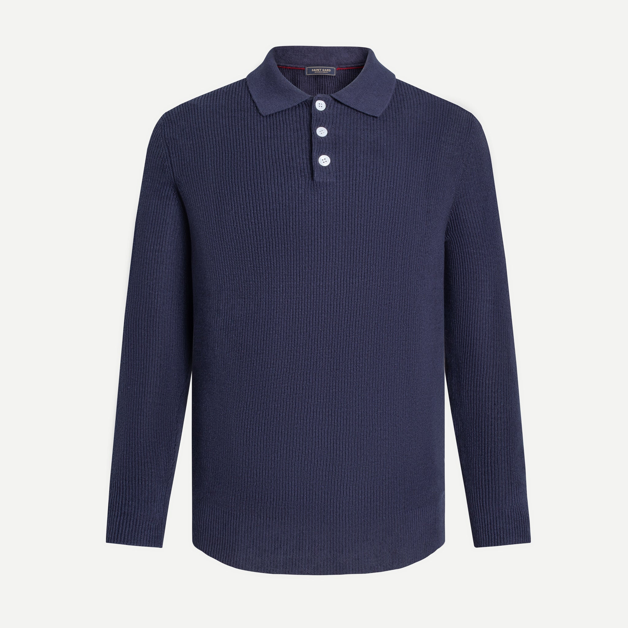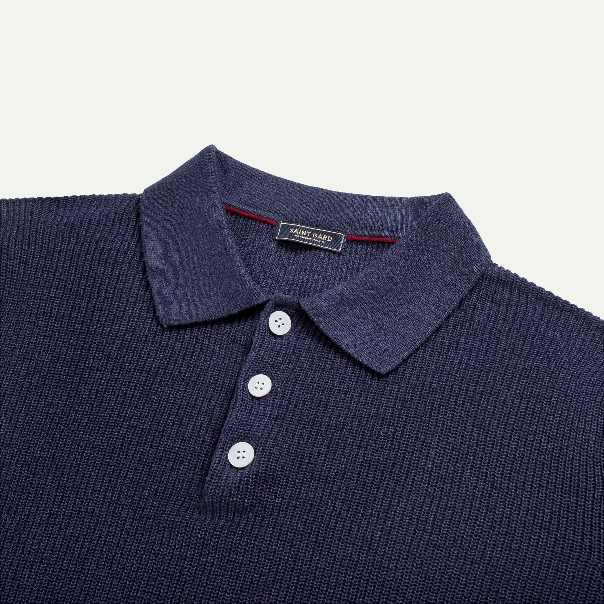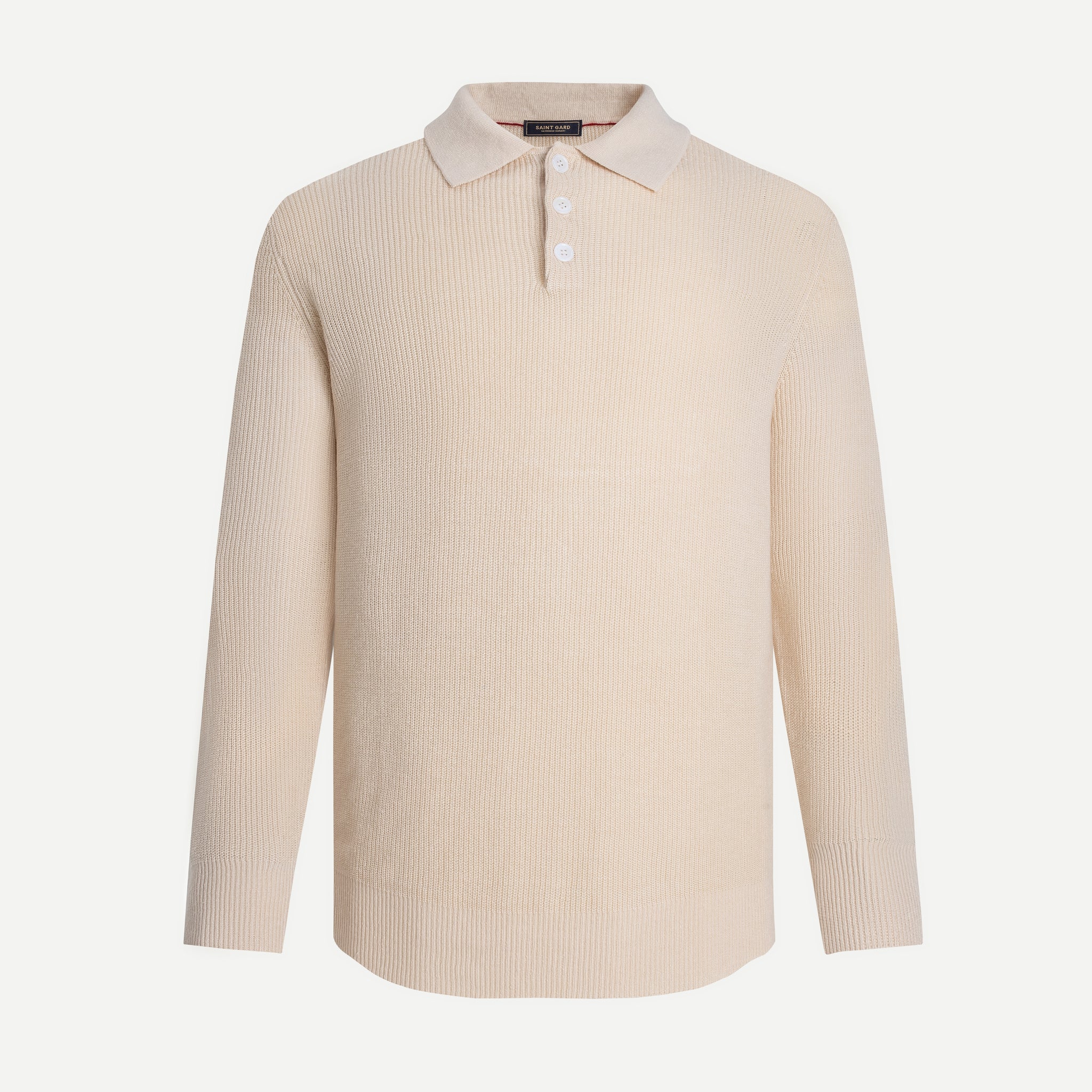 Áo len Polo dài tay Rib knit chống xù có thiết kế cổ gập thấp mang đến vẻ ngoài hiện đại và thoải mái, bo viền bằng vải dệt kim tinh tế.