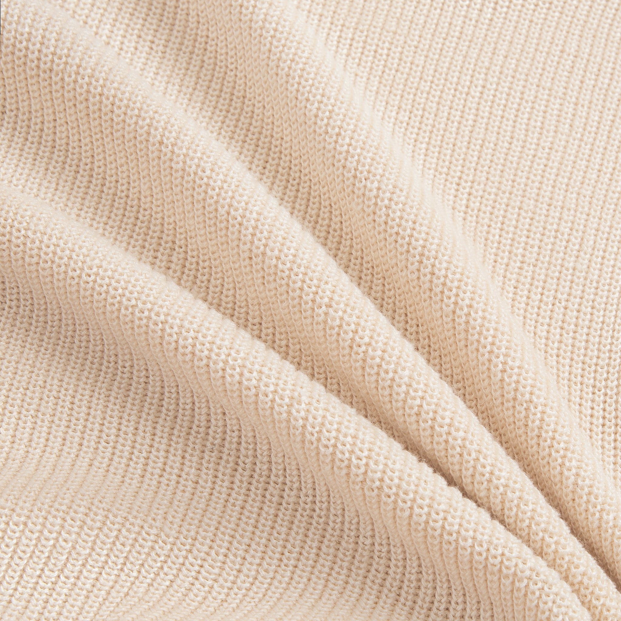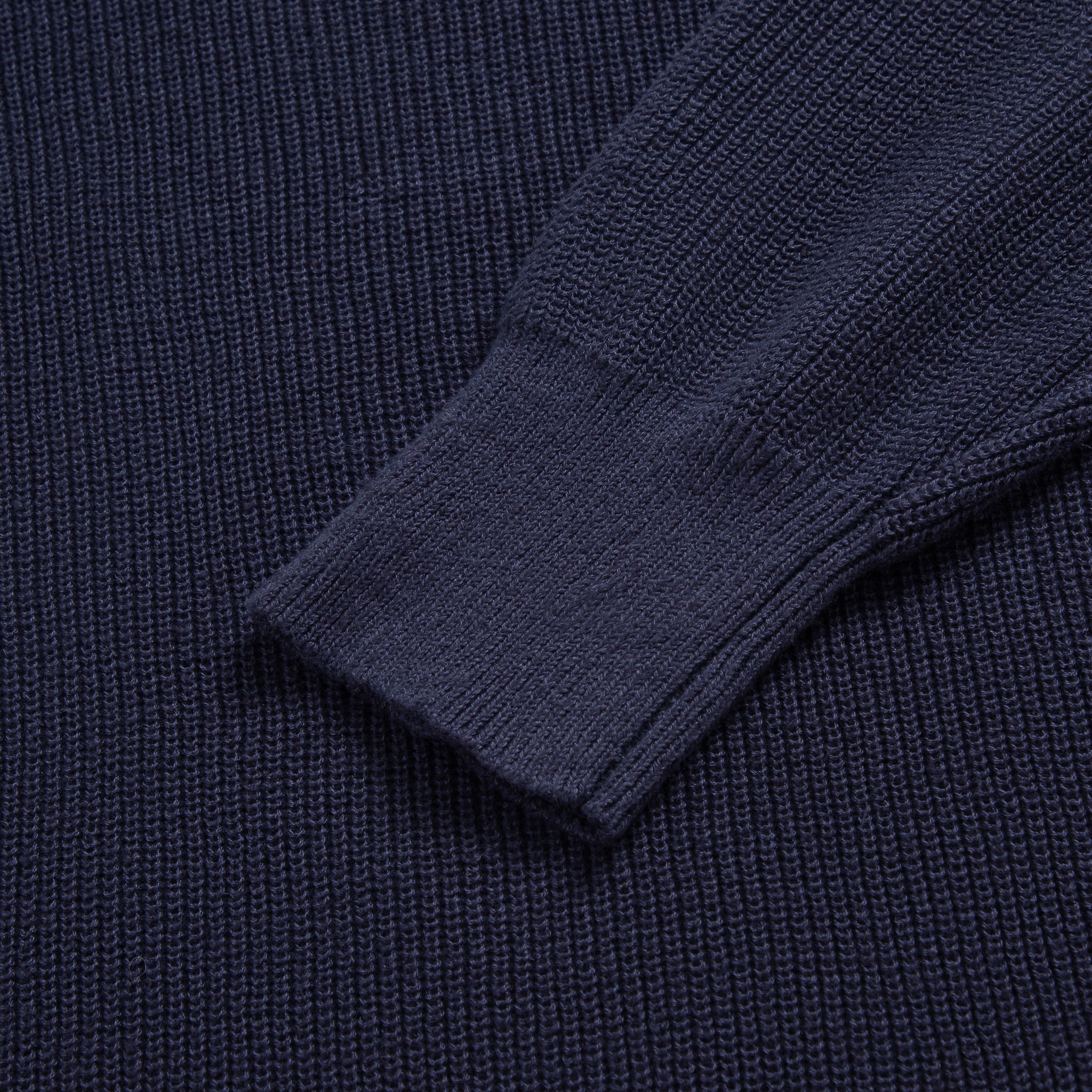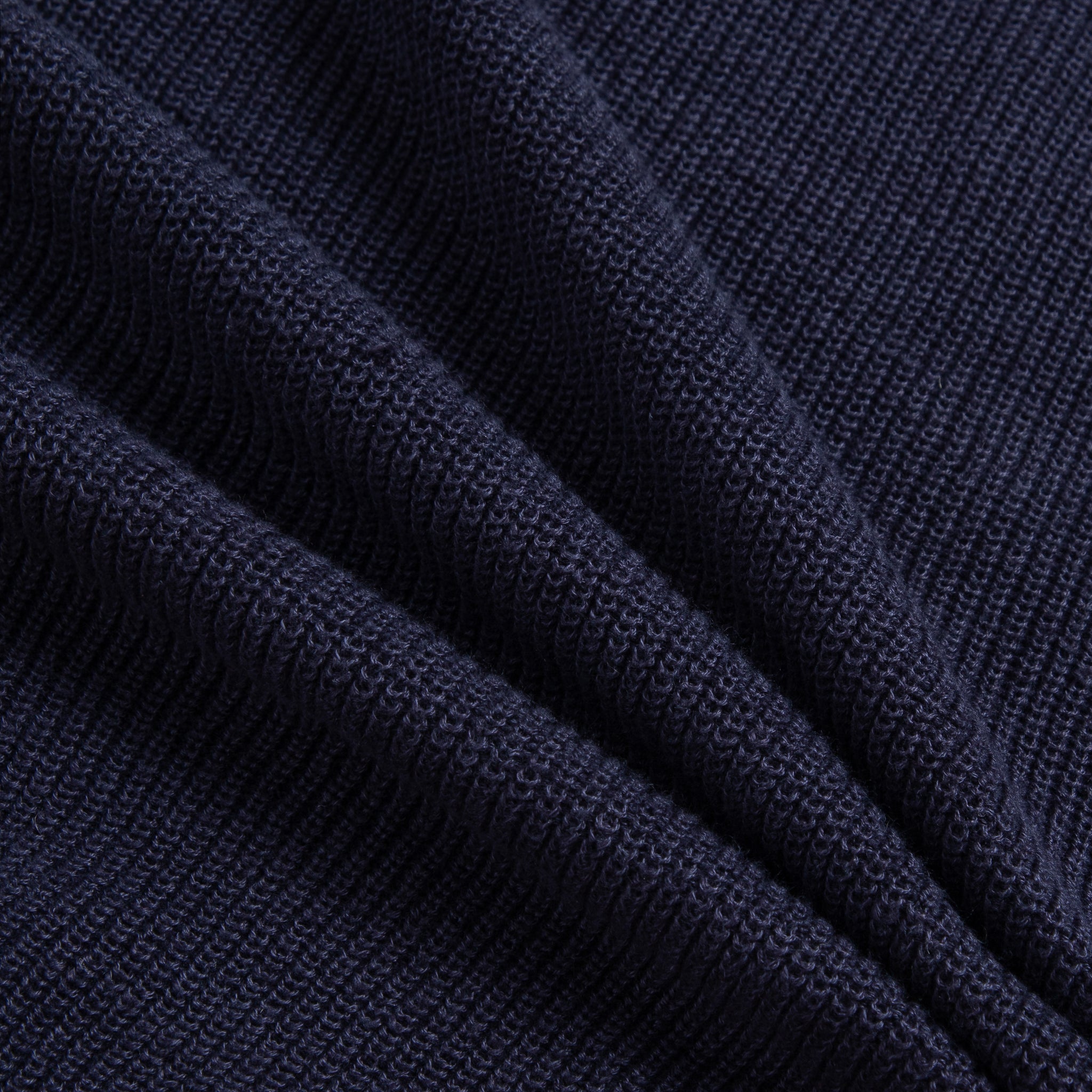 Áo len Polo dài tay Rib knit chống xù có thiết kế cổ gập thấp mang đến vẻ ngoài hiện đại và thoải mái, bo viền bằng vải dệt kim tinh tế.