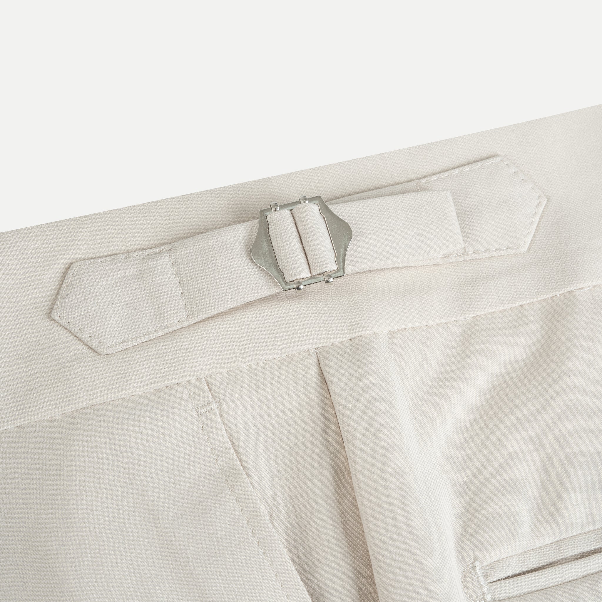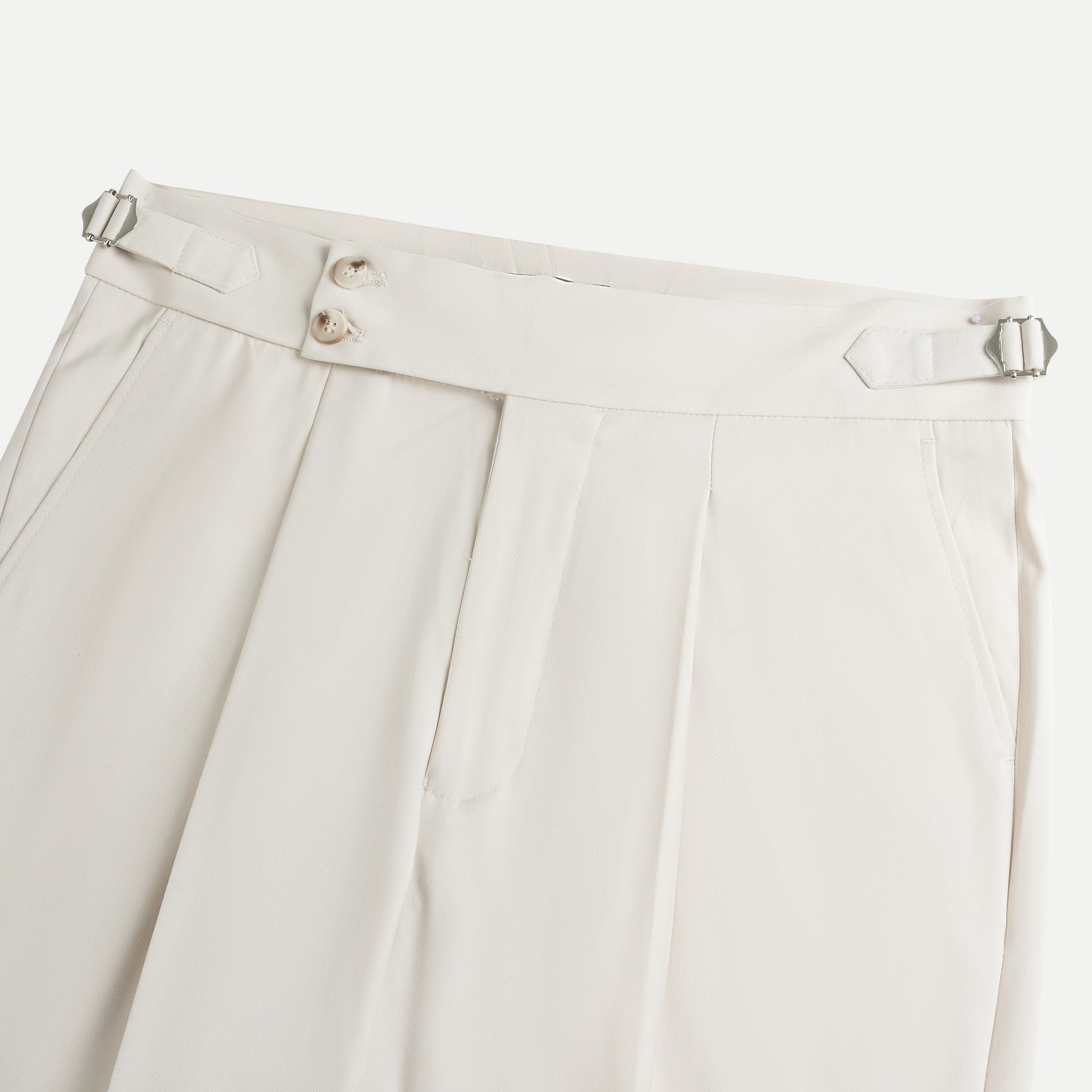 Bộ suit vải Kaki với những chi tiết đường ly trước tinh tế, tạo form dáng sắc nét và thanh lịch. Thiết kế hai túi phía trước , cùng với khuy cài phía trước, tôn lên sự thanh lịch và vẻ ngoài chỉn chu.