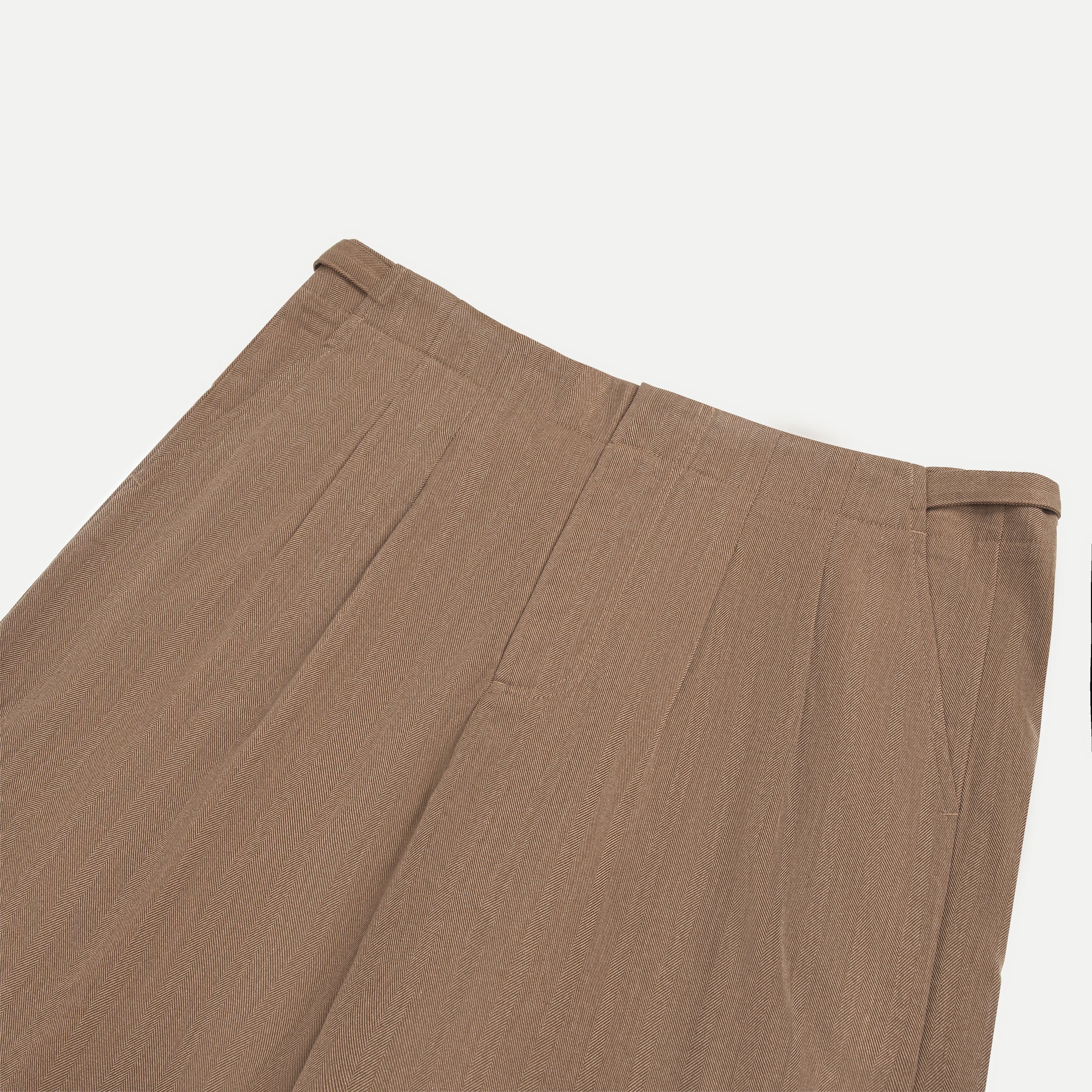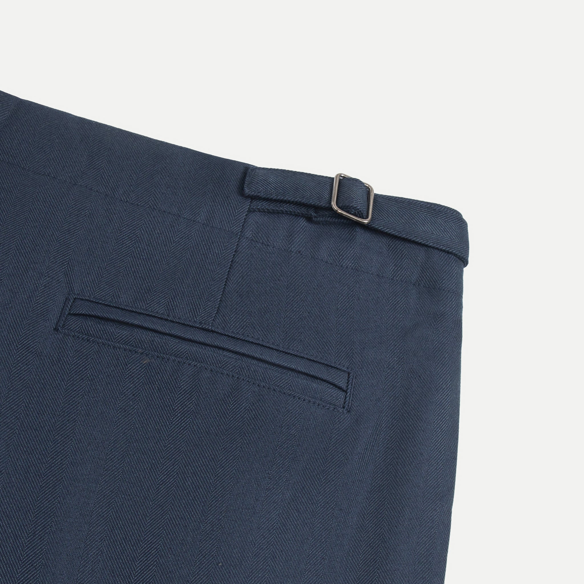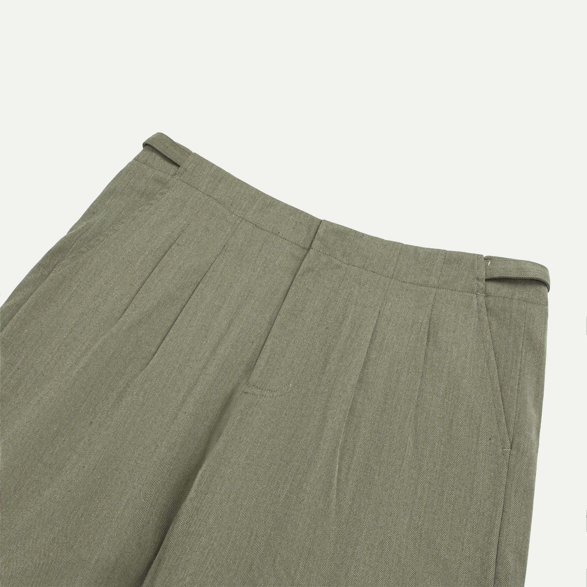 Vải dệt herringbone có đặc tính nổi bật là hoạ tiết zigzag đặc trưng giống xương cá, tạo nên vẻ ngoài thanh lịch và cổ điển. Chất liệu này chắc chắn, bền bỉ, có khả năng chống mài mòn tốt, đồng thời mềm mại, ít xù lông và giữ màu lâu. Ngoài ra, vải herringbone còn có độ rủ tốt, dễ ủi