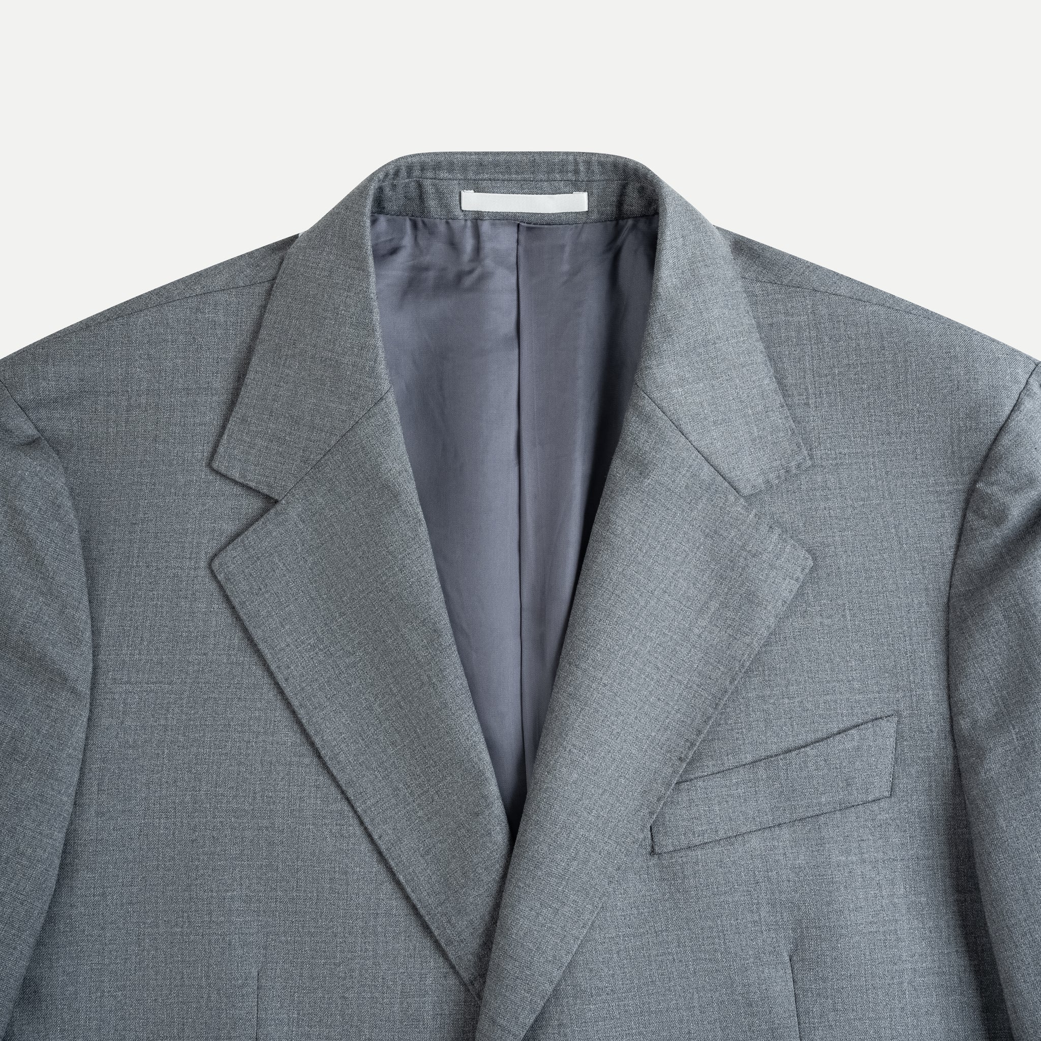Bộ suit cotton twill  : Áo blazer cổ ve lật, cổ V có đột cổ quanh ve, phối túi có nắp, có độn vai nhẹ
