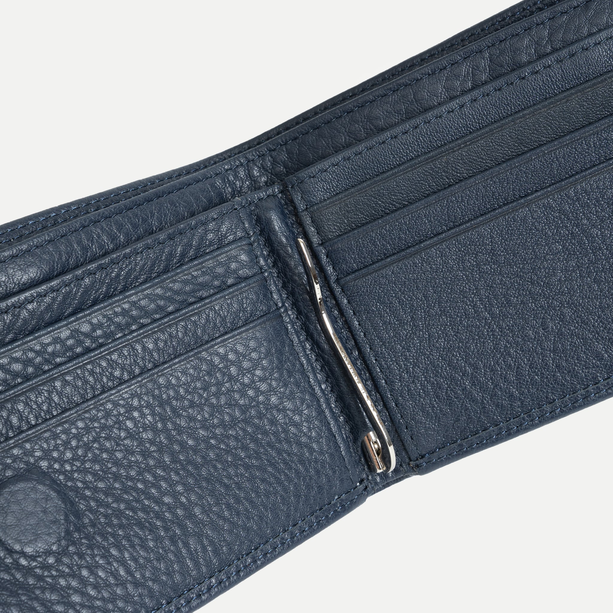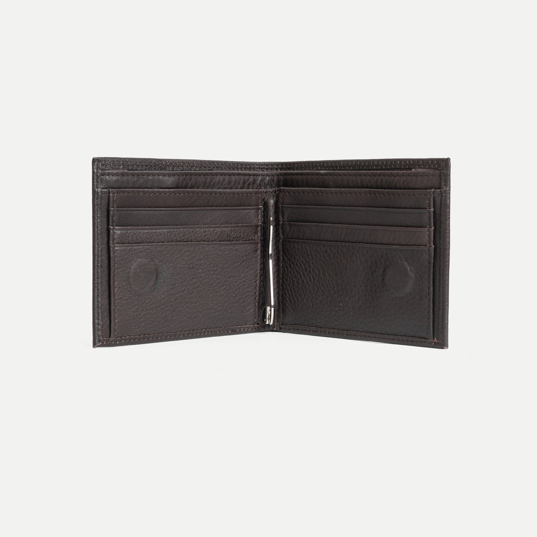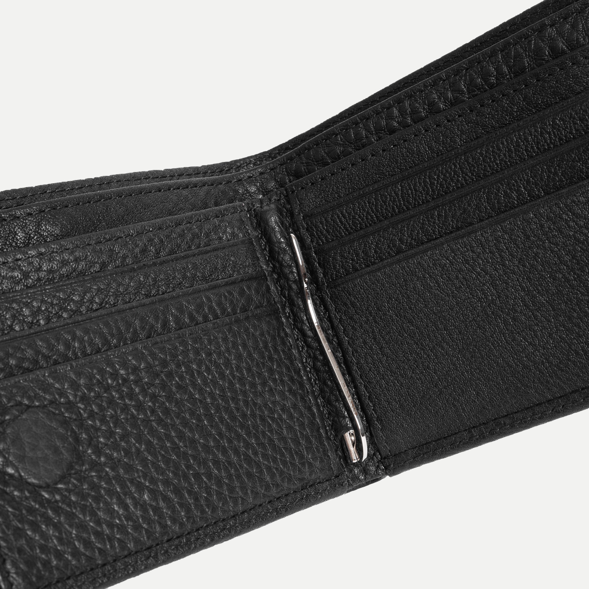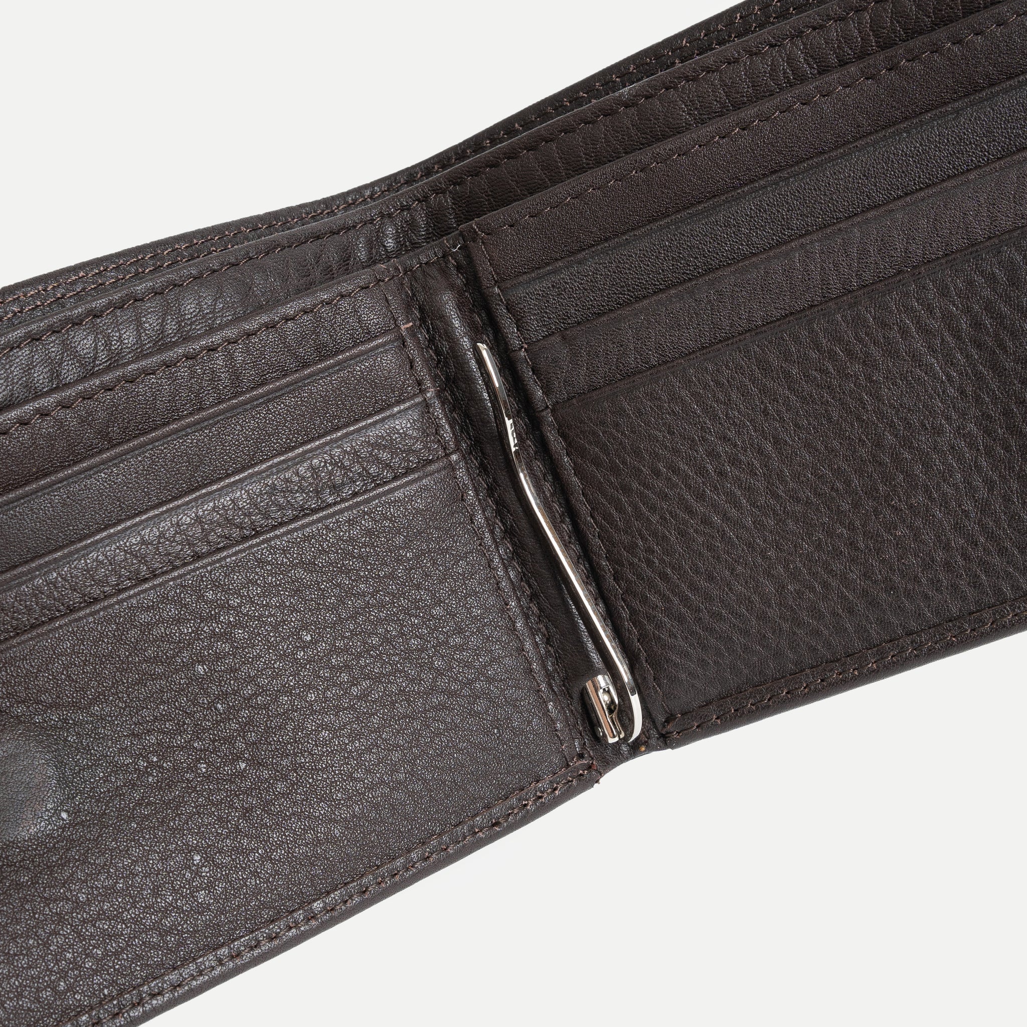 • Bên trong nhiều ngăn đựng thẻ + kẹp giữ tiền kim loại chắc chắn.