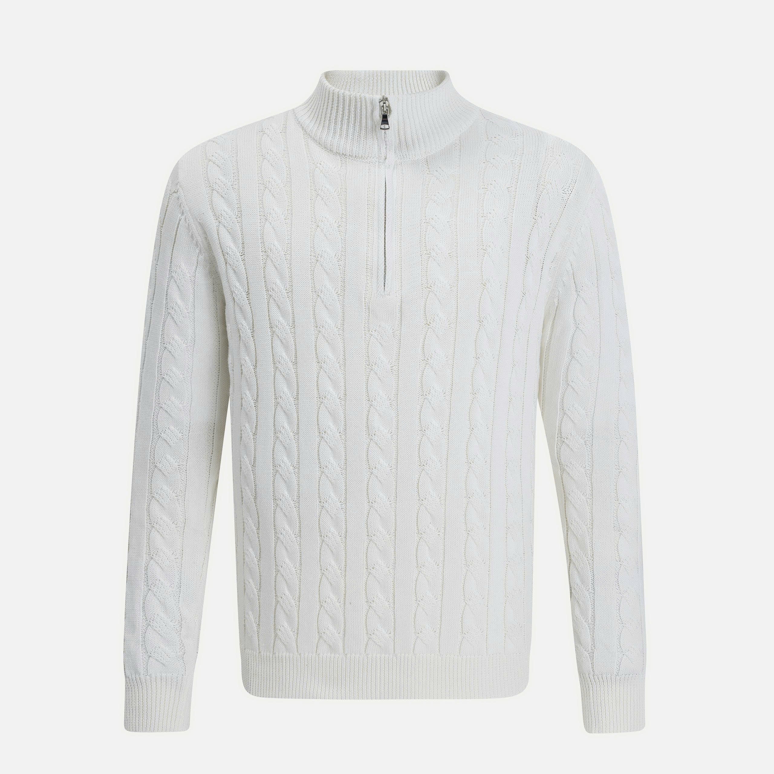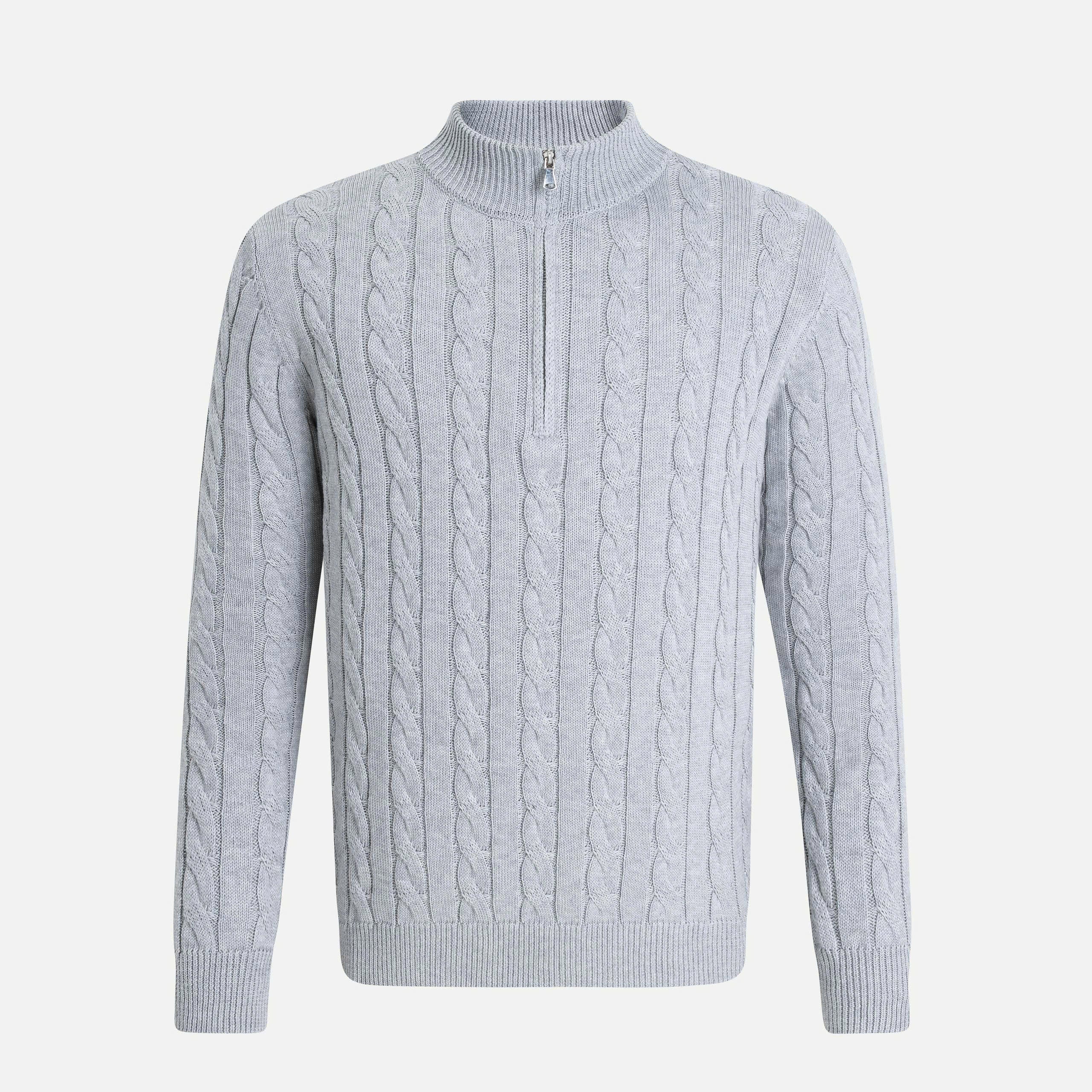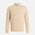 يُضفي هذا الكنزة الصوفية المصنوعة من مزيج الكشمير والمُحاكة بتقنية الكابلات لمسةً دافئةً وأنيقةً كلاسيكيةً بفضل نسيجها المميز المُحاك على شكل حبل ملتف. تتميز هذه القطعة بنقوش كابلات متوازية تُشكّل سطحًا بارزًا غنيًا، مما يمنحها مظهرًا راقيًا لا يتقادم، ويُشعرك بالفخامة والراحة في آنٍ واحد.