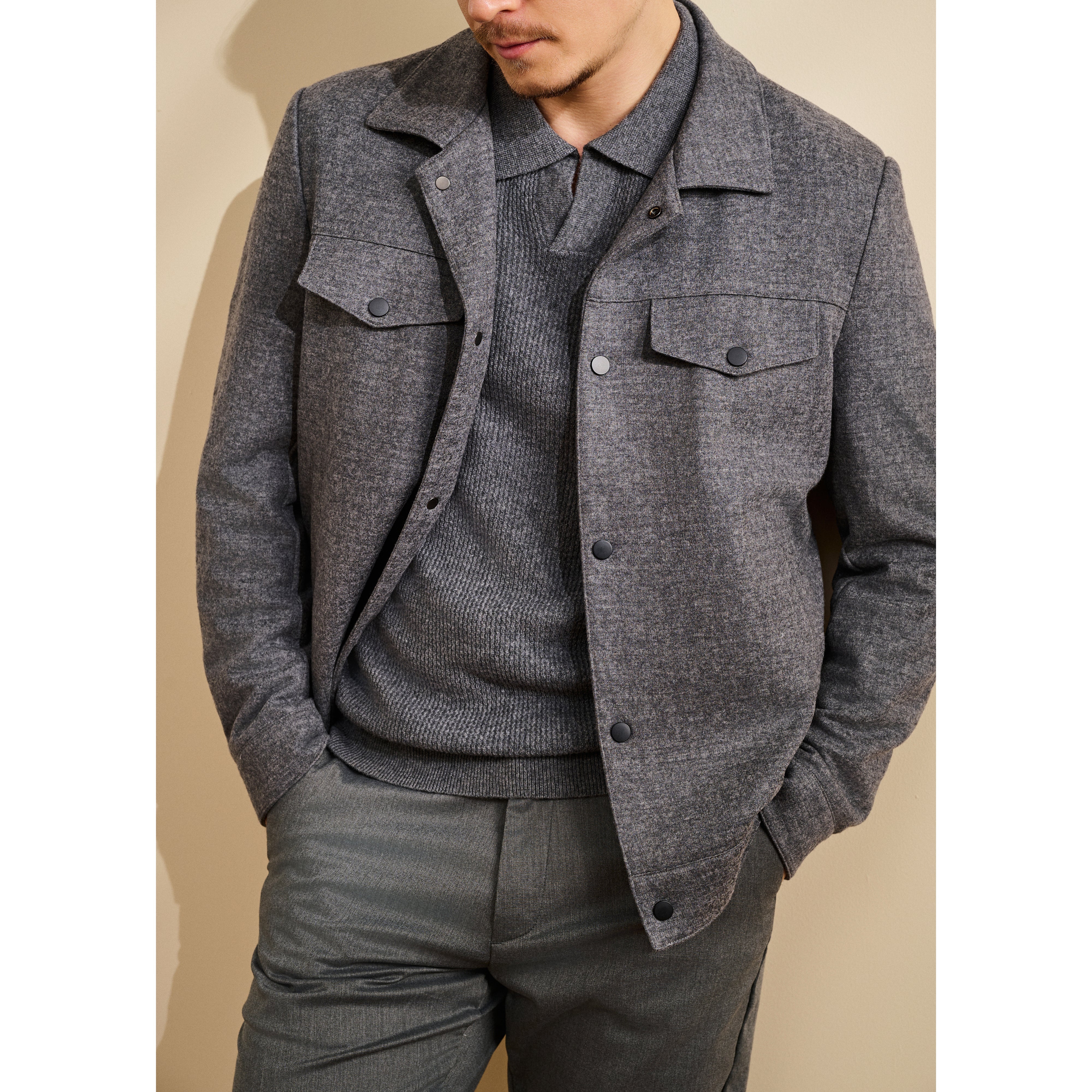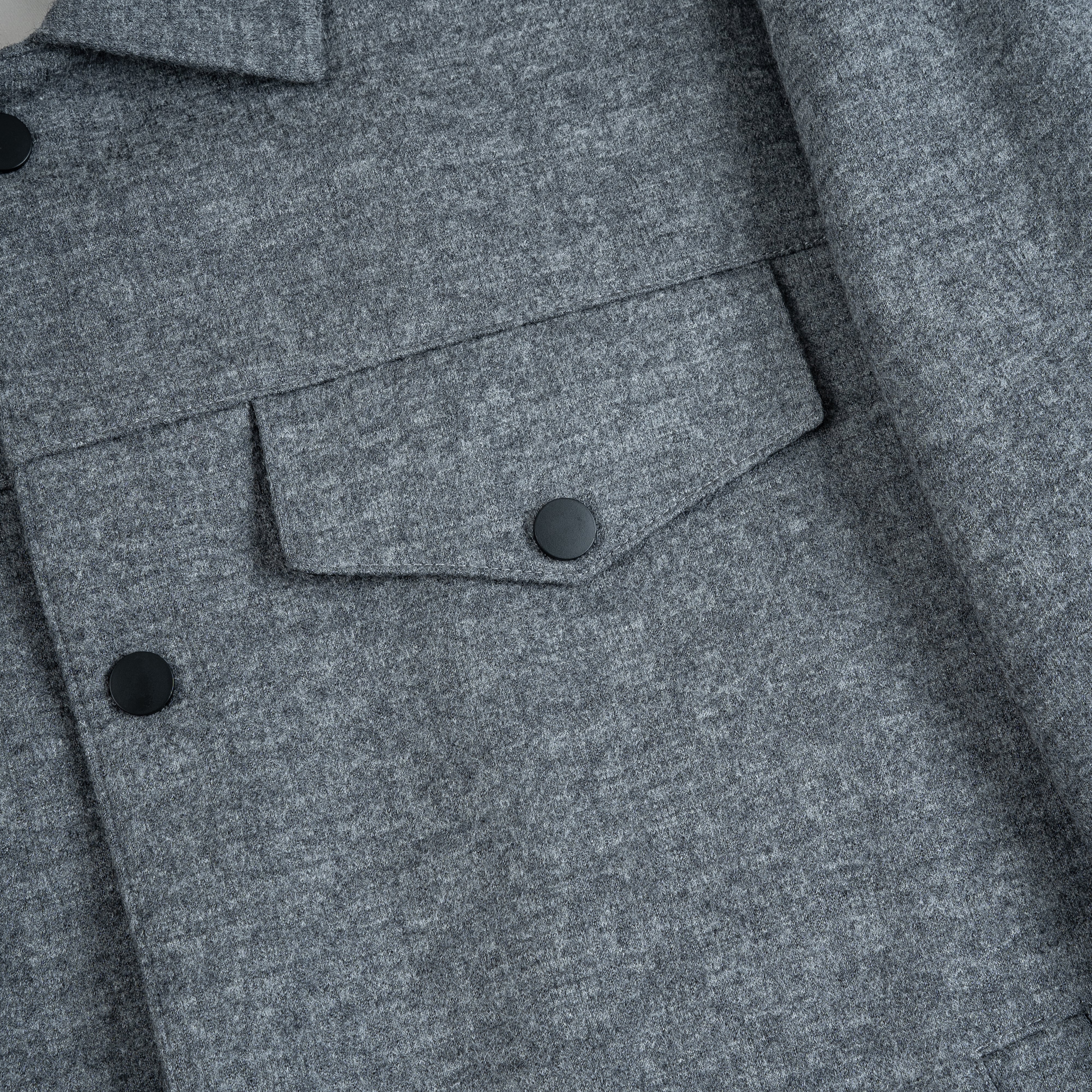 Wool Shirt Jacket with Flap Chest Pocket blends classic tailoring with modern practicality, offering a refined outerwear option for everyday smart-casual styling. Designed in a shirt-style silhouette, it features a sharp fold-down collar, long sleeves with buttoned cuffs, and a clean front button closure for a polished, effortless look.