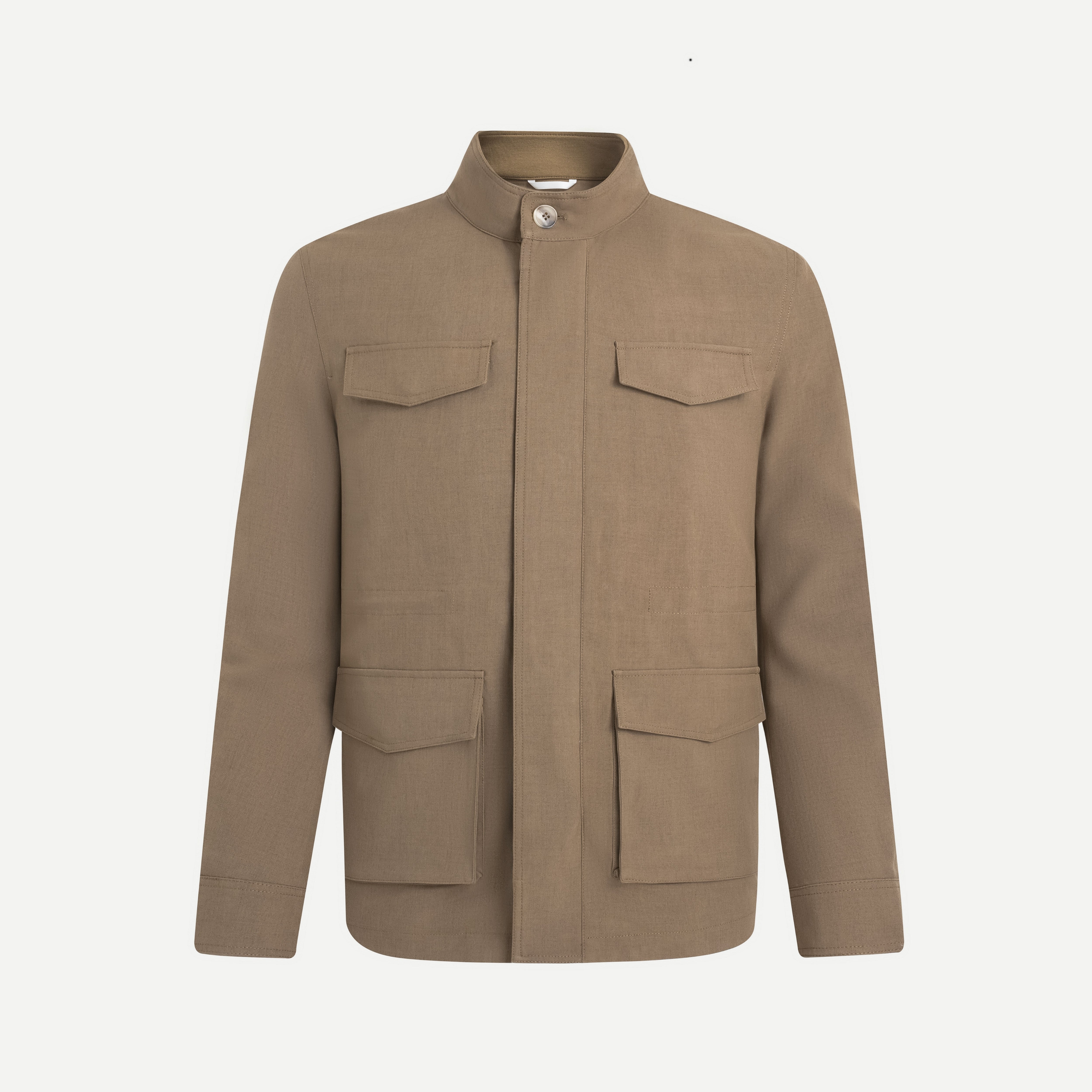 Textured Khaki Field Jacket is designed in a smart-casual Field Jacket style, offering a refined yet functional appearance. Featuring a stand collar, the jacket presents a neat and structured look. The Regular Fit silhouette is tailored to enhance the body shape while maintaining comfort and ease of movement. Attention to detail is reflected in the quality fabric, harmonious color tones, and clean, precise stitching.