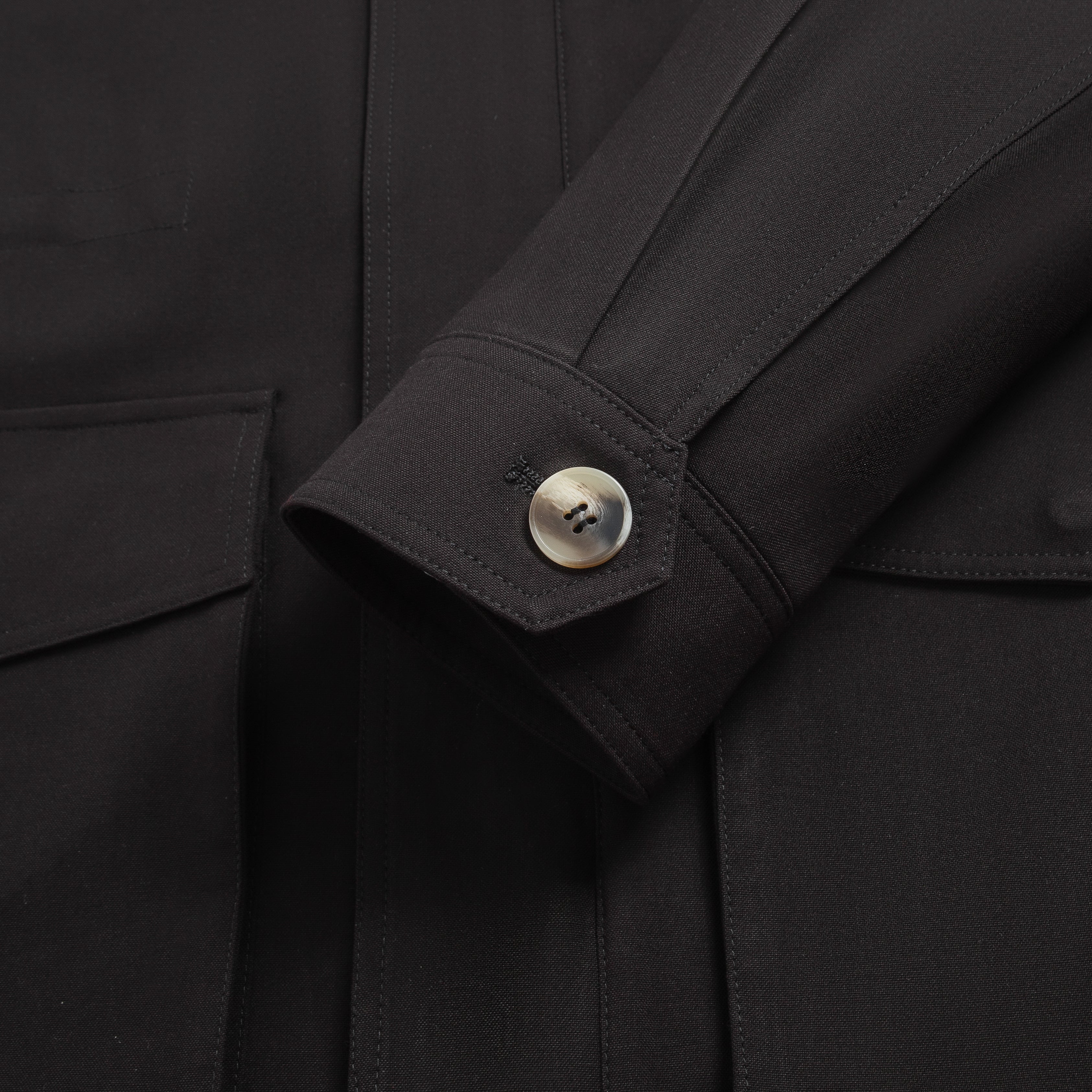 The jacket is crafted from Wool Polyester Blend, combining the warmth of wool with the durability and easy-care properties of polyester.