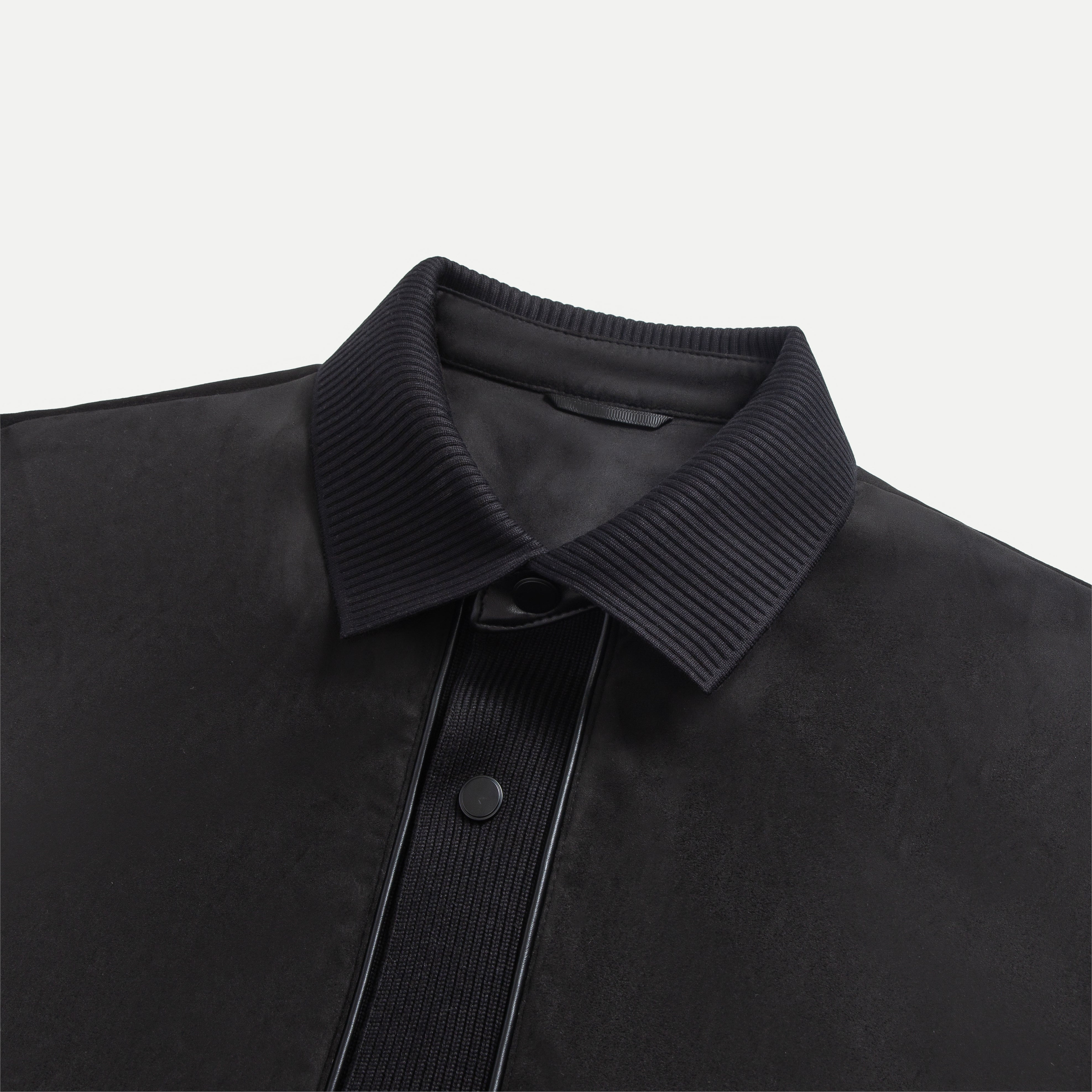 The Suede Jacket with Knit Accents is designed in a smart-casual style that balances refined structure with everyday comfort. Tailored in a Regular Fit, the jacket maintains a clean, upright silhouette that allows ease of movement while preserving a polished appearance suited to the modern gentleman.