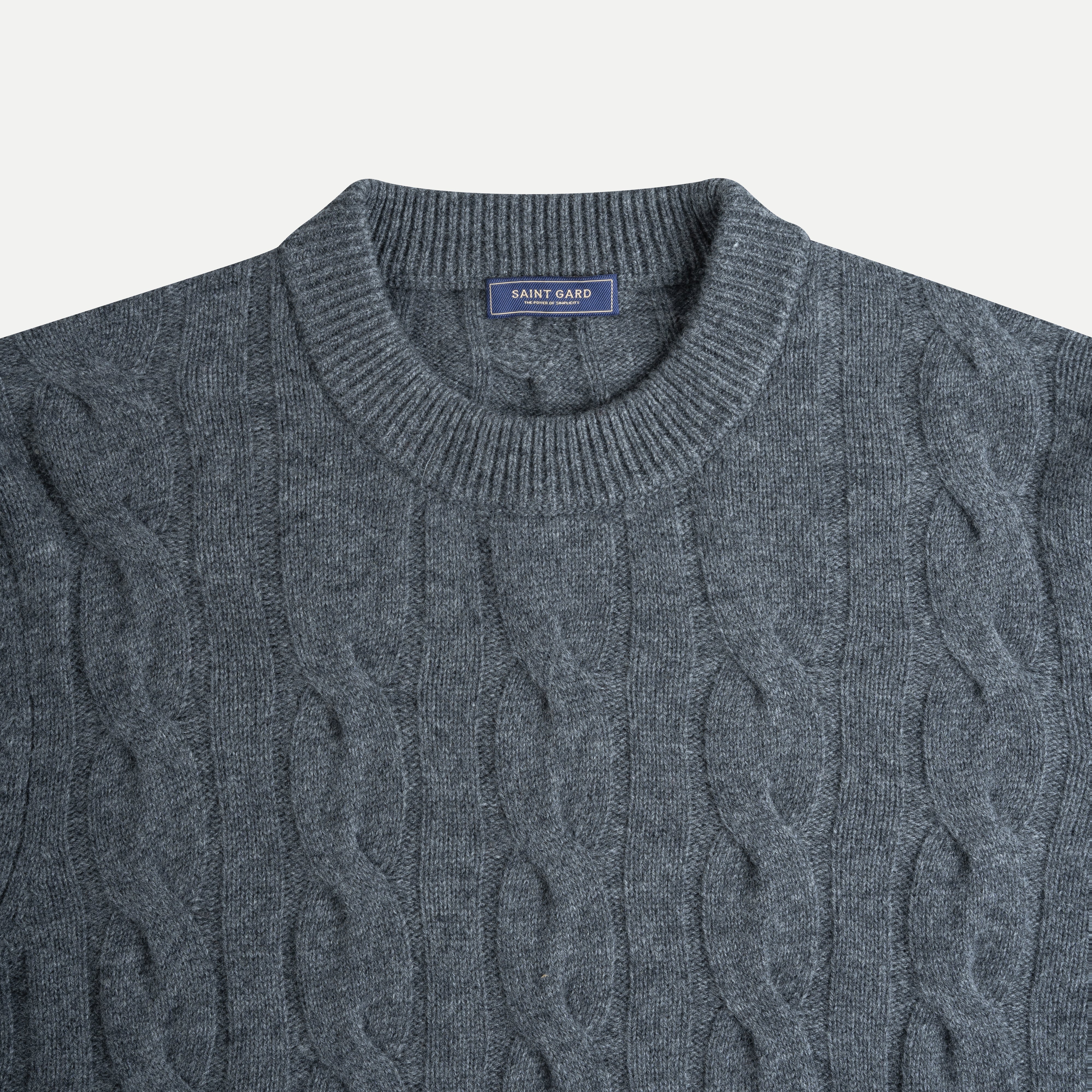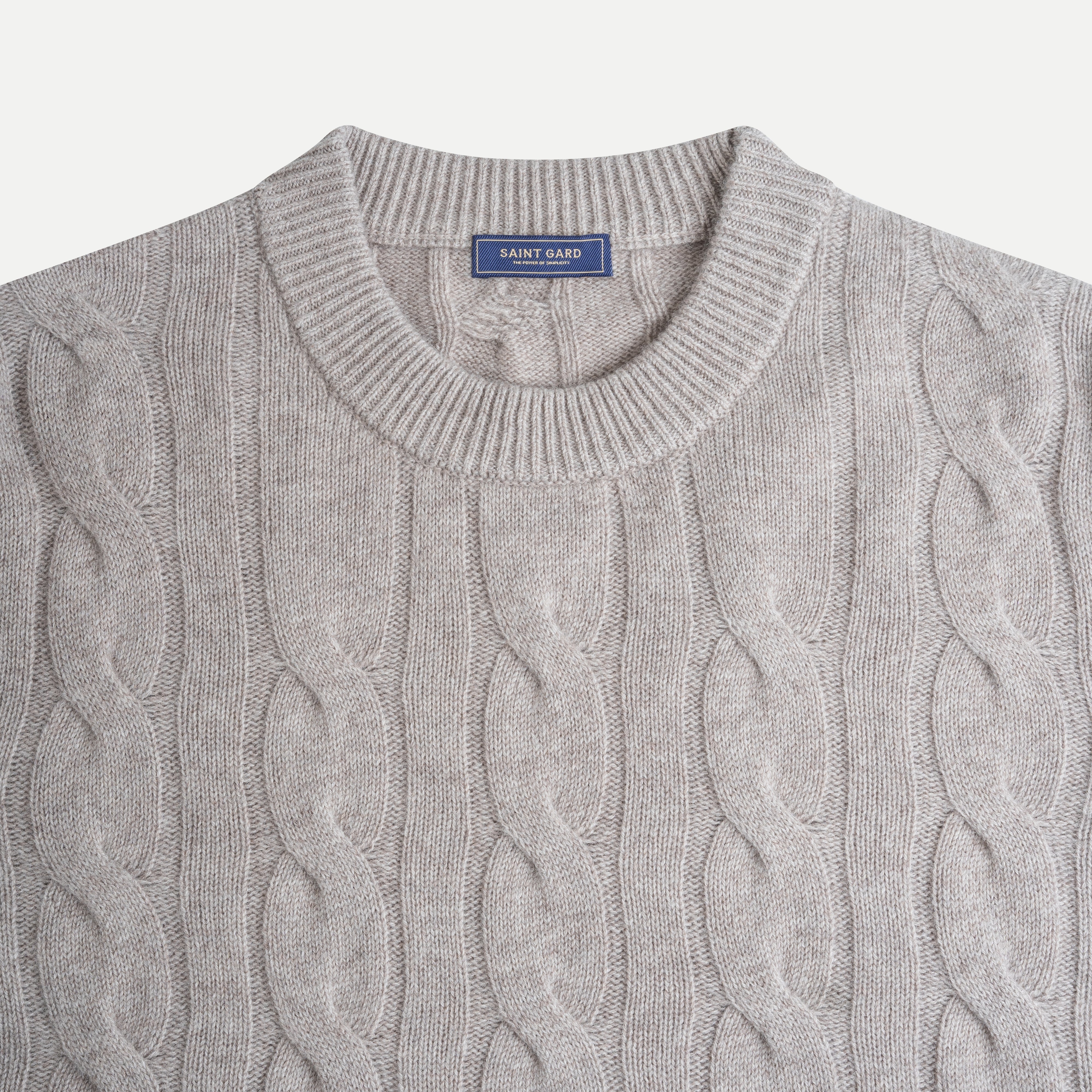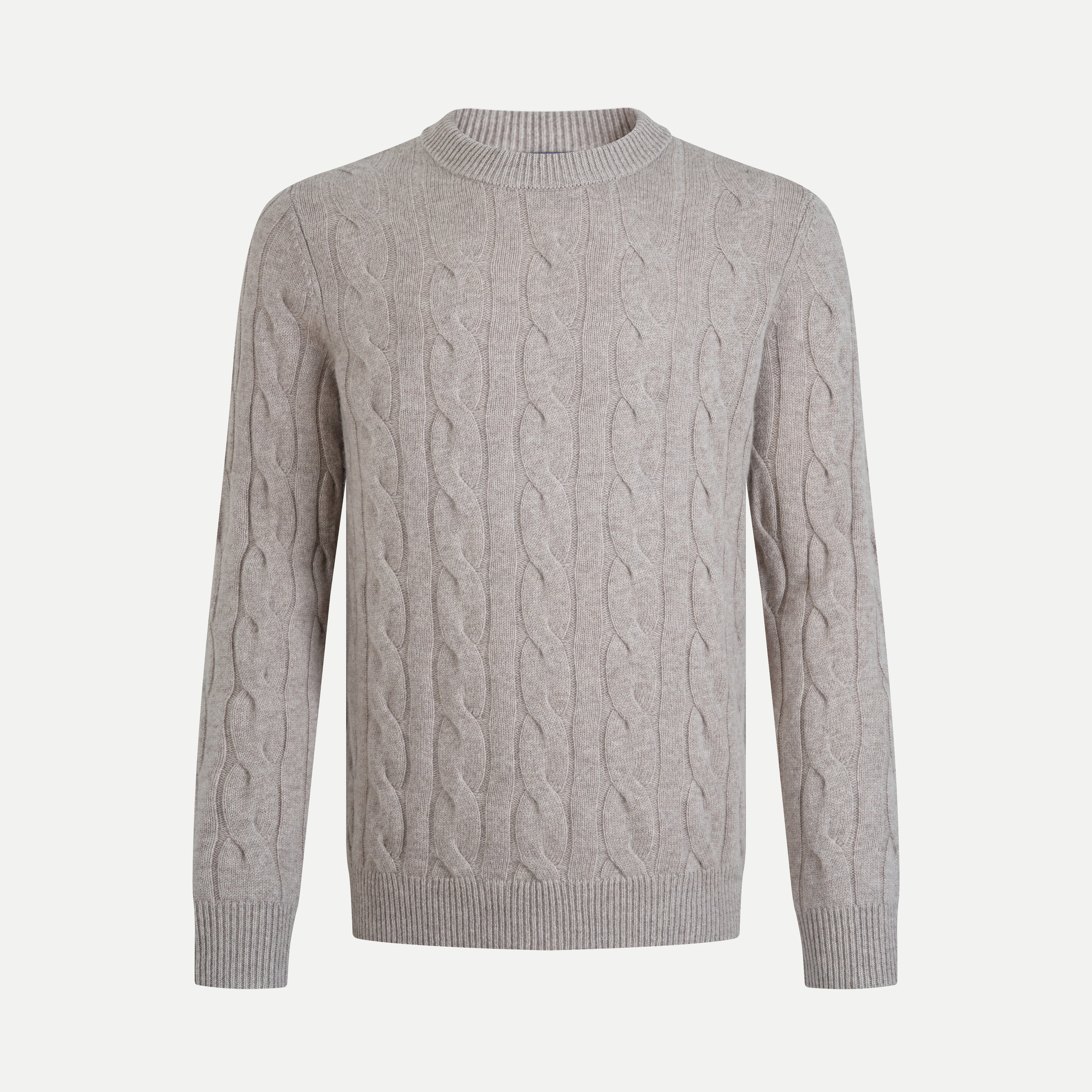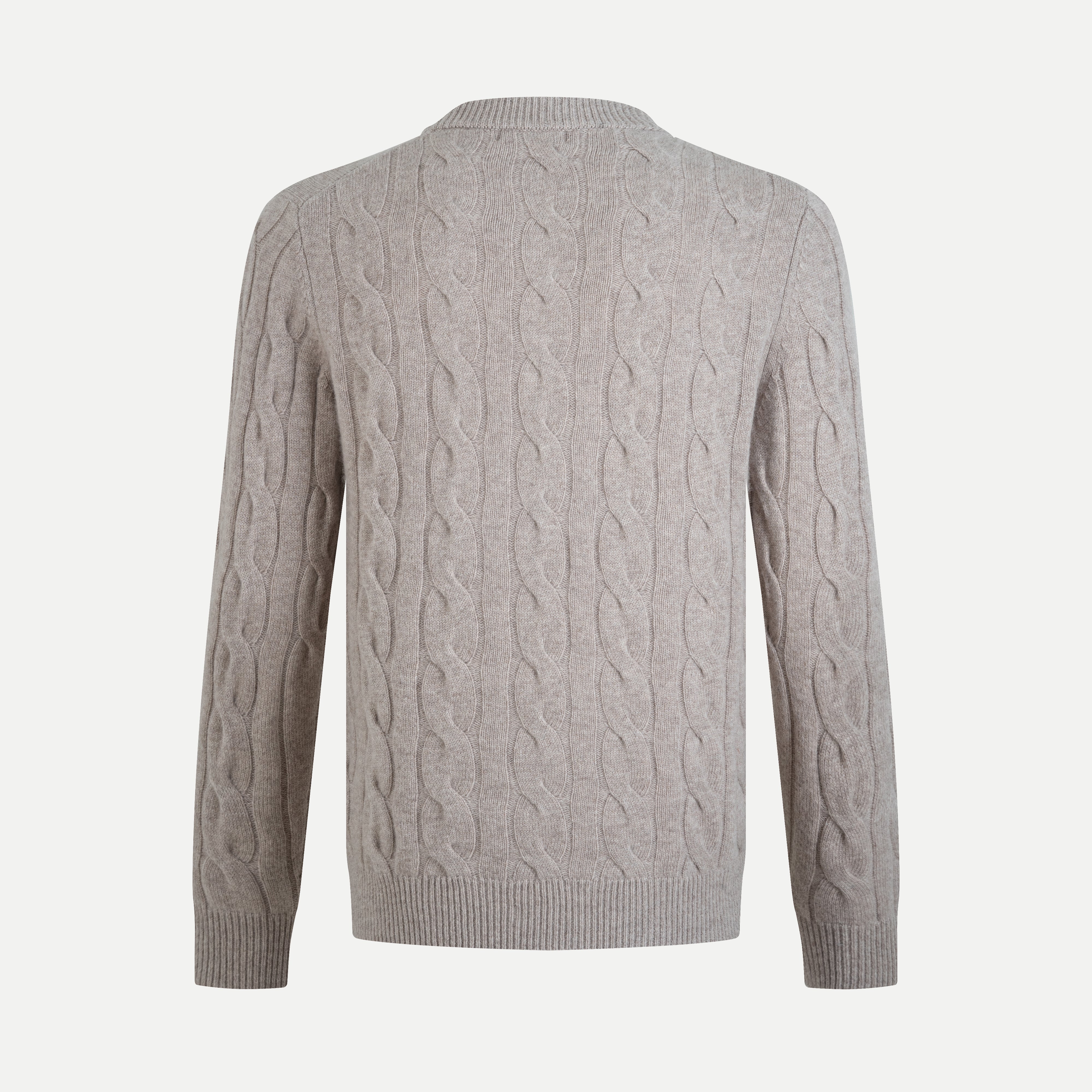 The Cable-Knit Cashmere-Blend Sweater delivers a warm, classic elegance through its signature rope-twist knit texture. Featuring parallel cable patterns that create a rich raised surface, this piece brings a timeless, sophisticated look that feels both refined and effortlessly wearable.