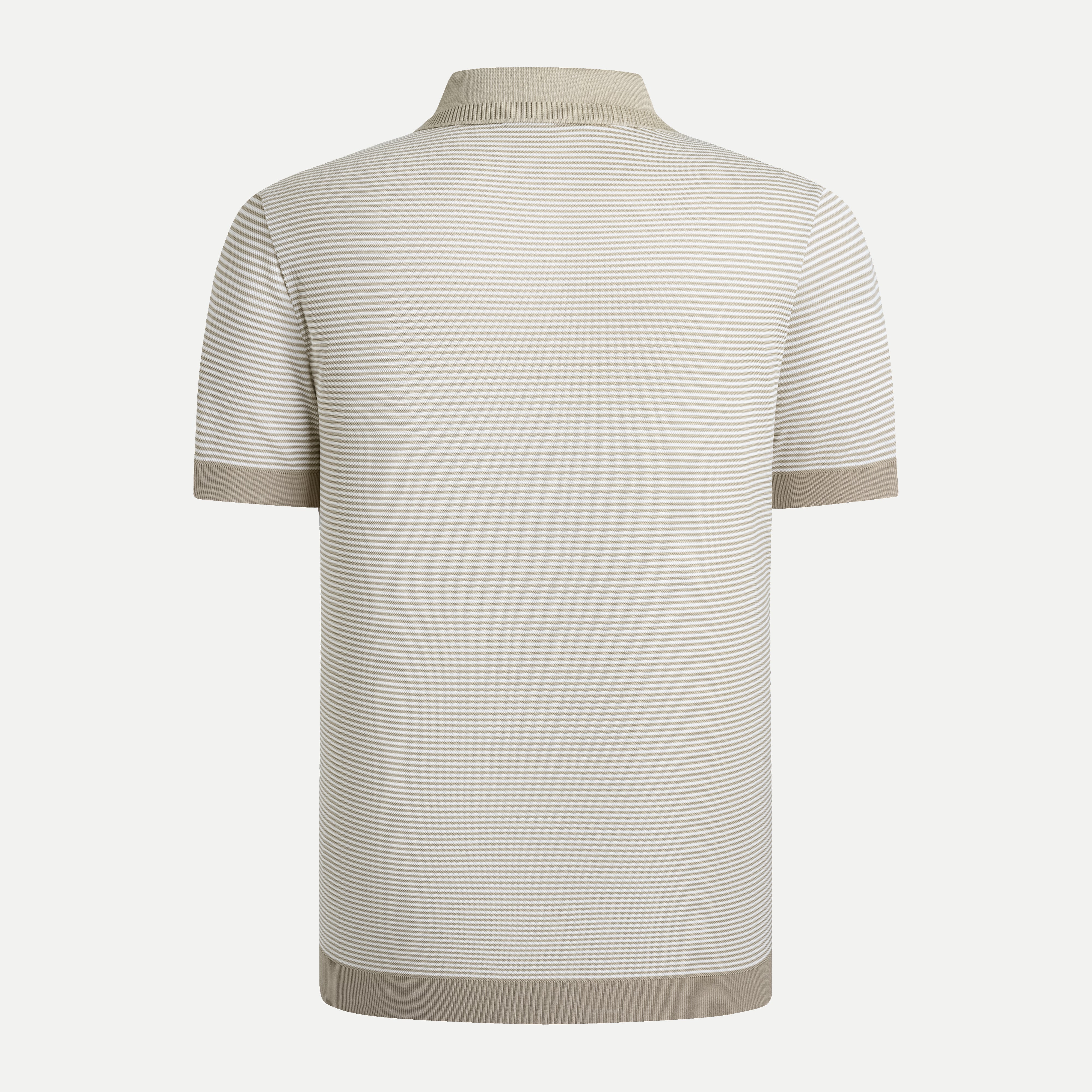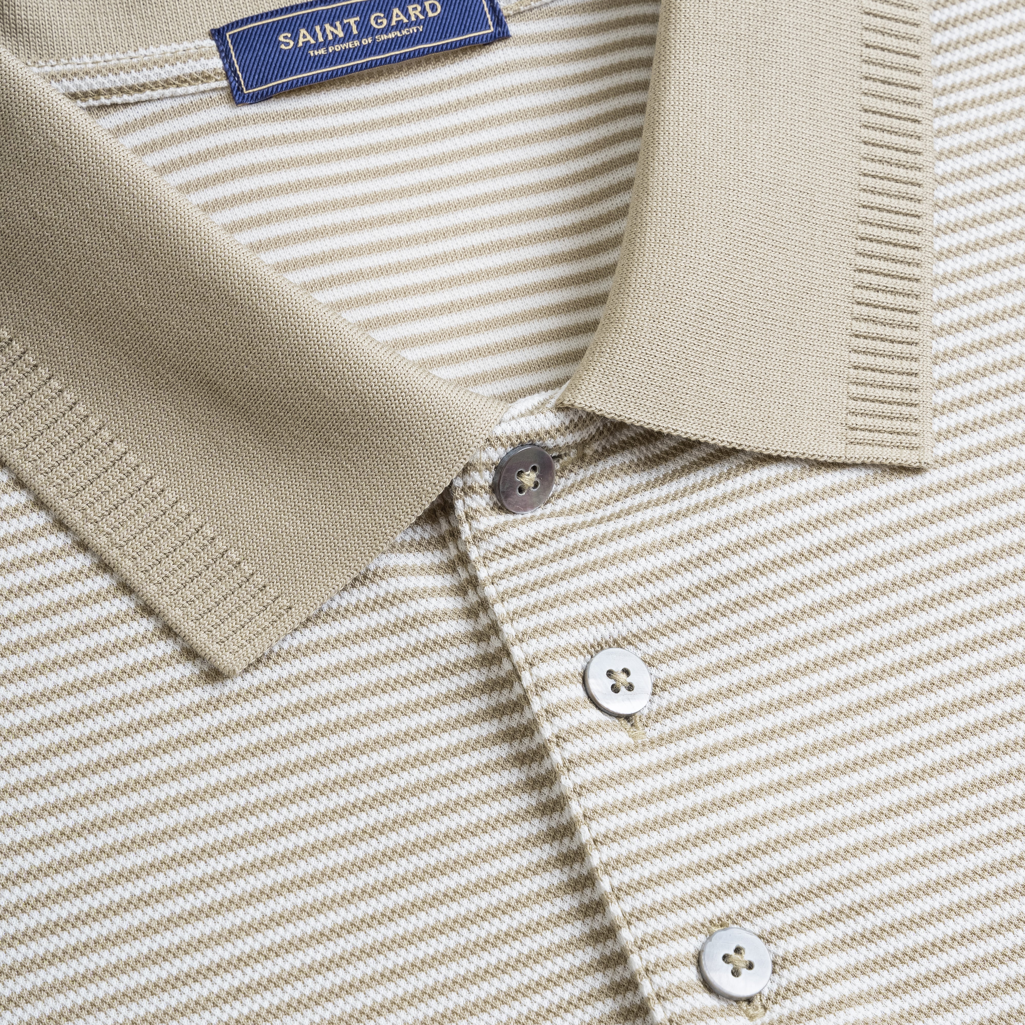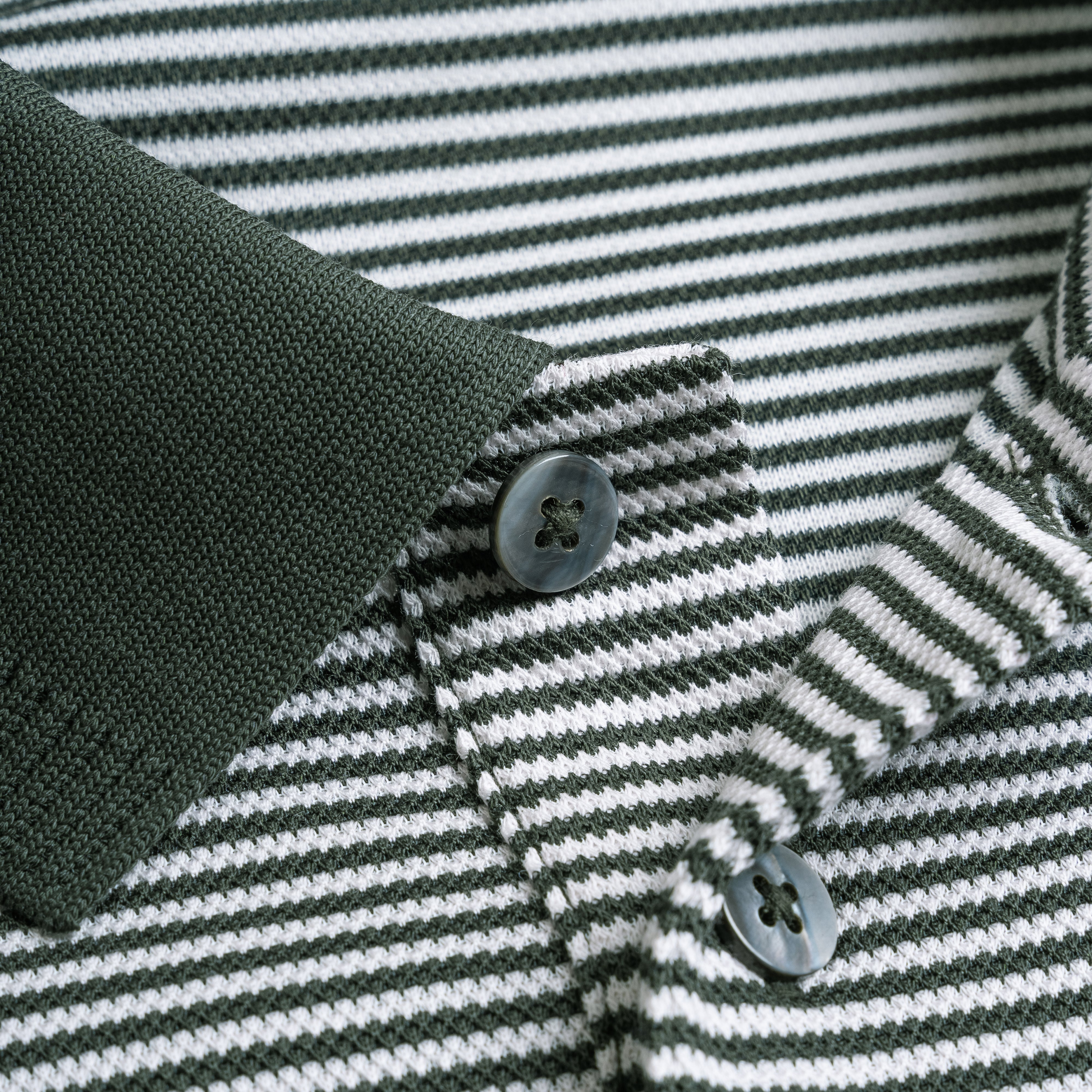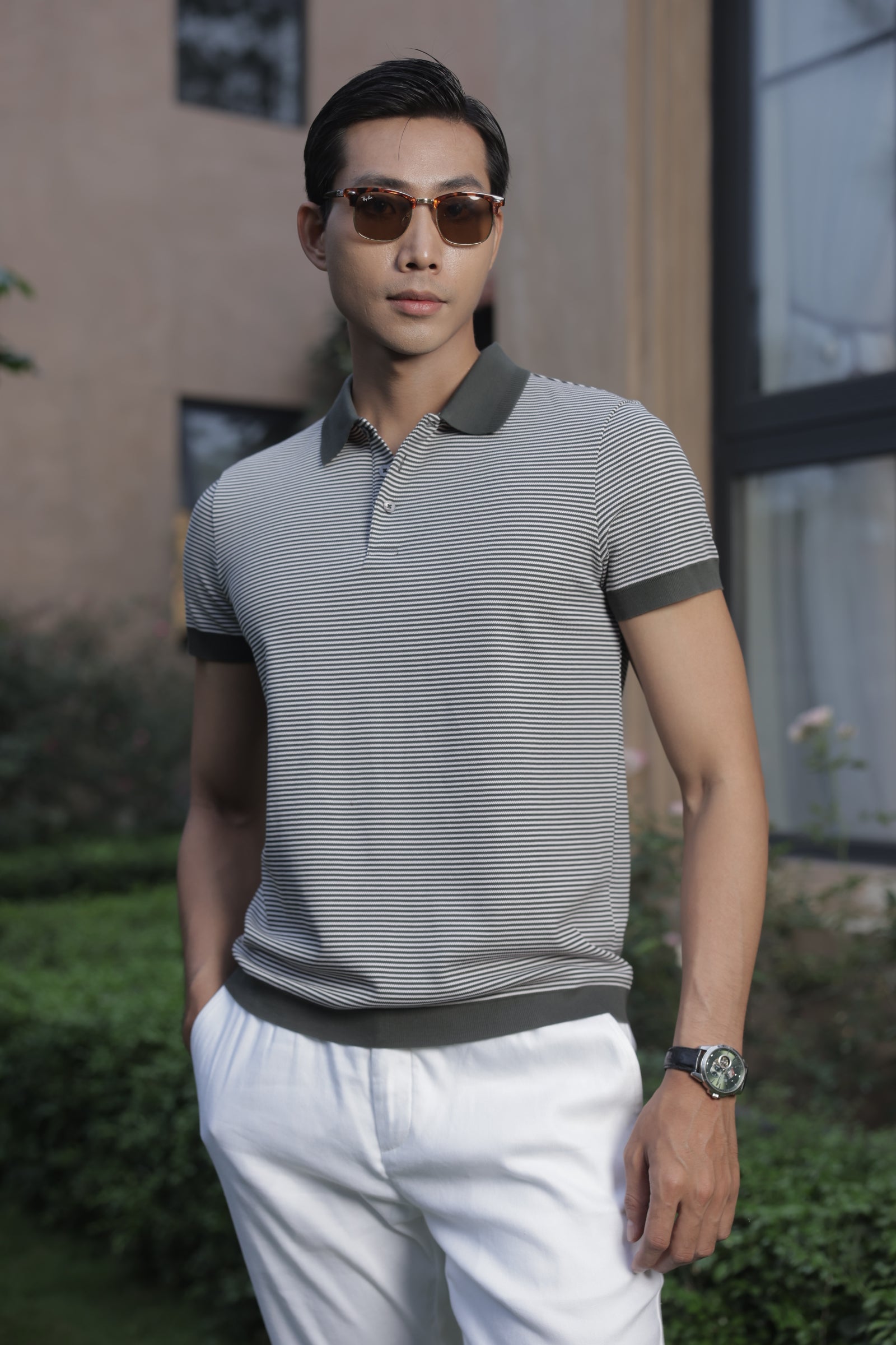 The Striped Knit Polo Shirt combines modern design with premium materials, delivering a refined yet comfortable look for everyday wear.
