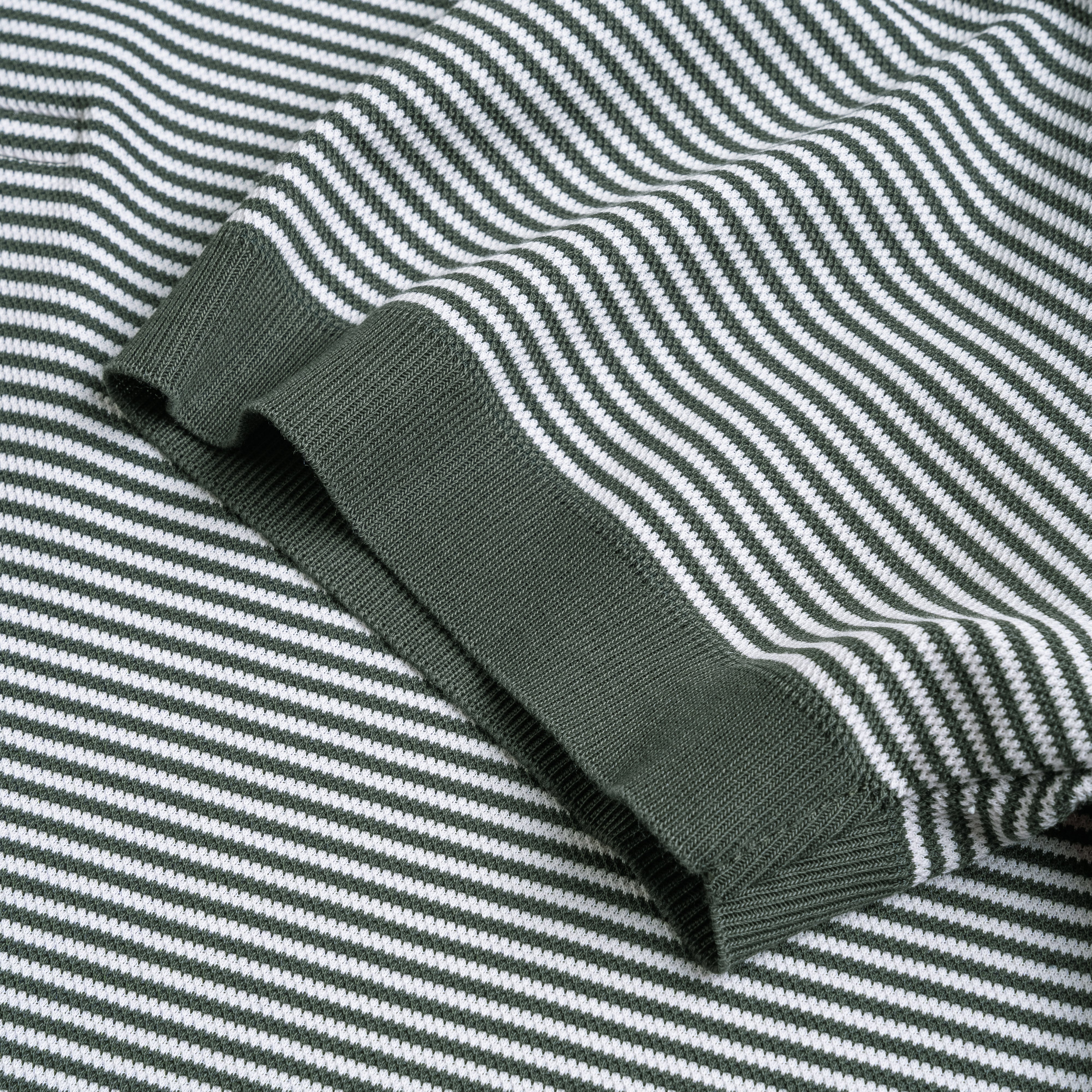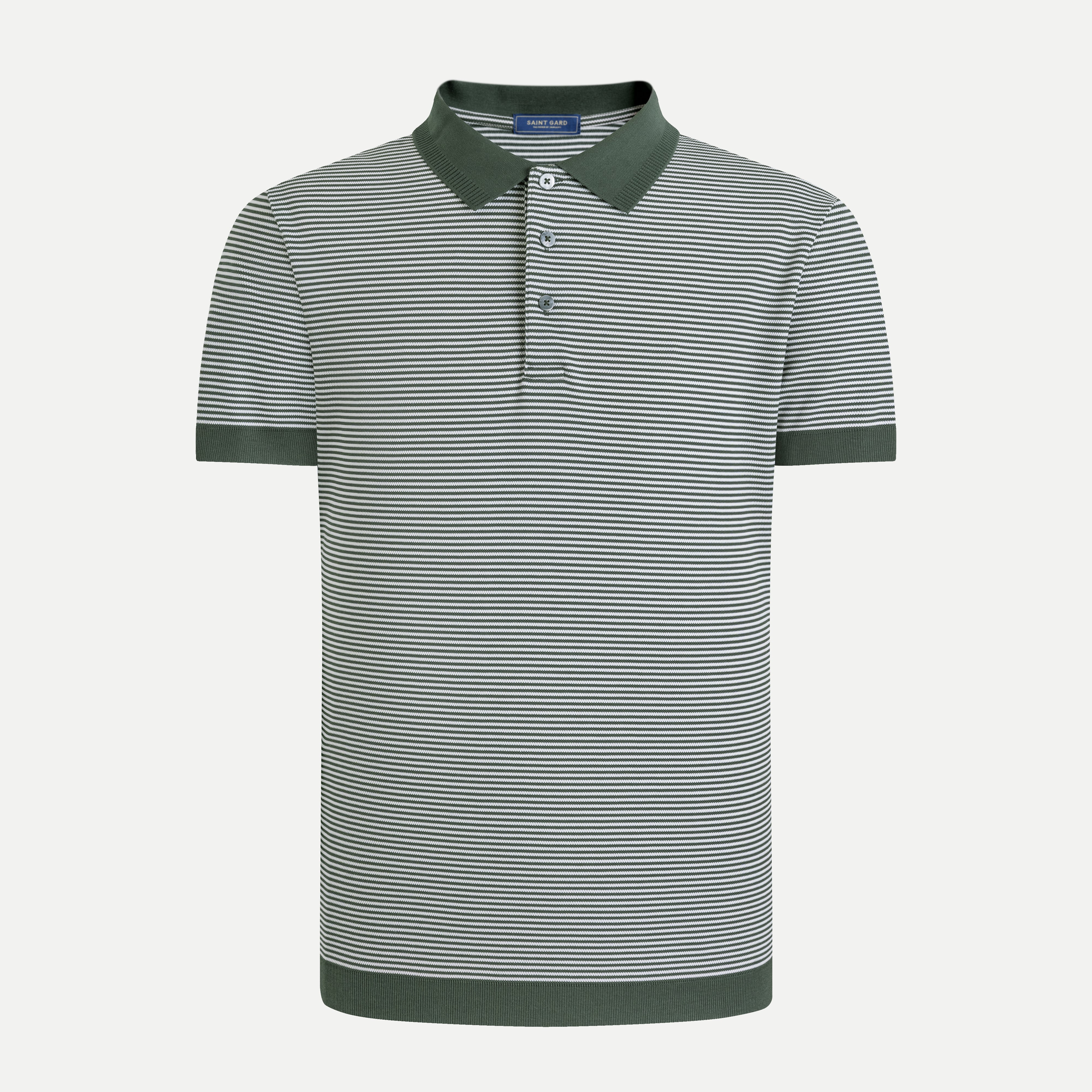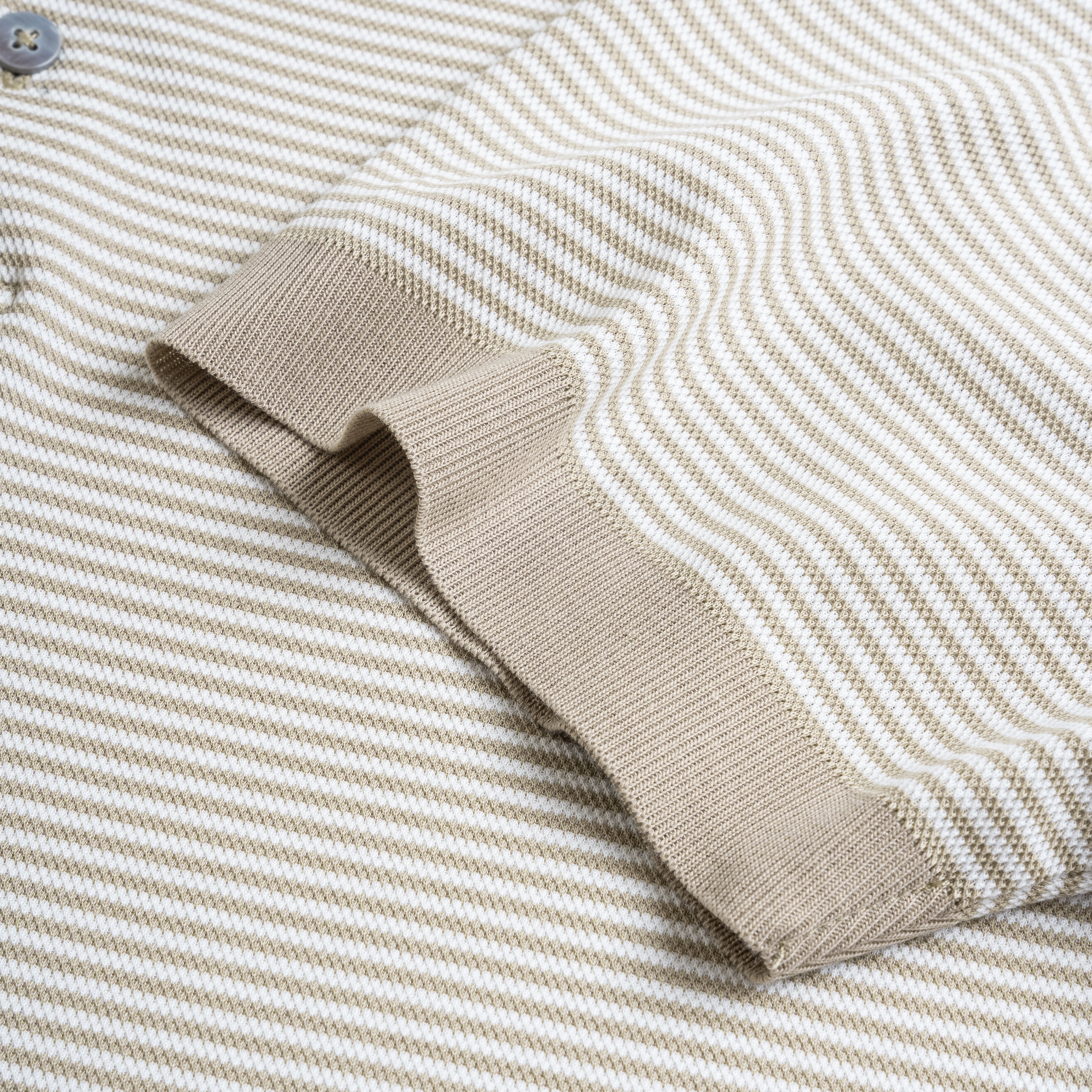 Featuring a Regular Fit with short sleeves, this polo is detailed with a horizontal stripe pattern that adds visual interest while maintaining a clean, elegant appearance. The fold-down collar, front button placket, and ribbed sleeve cuffs complete the classic polo silhouette, making it suitable for both casual and smart-casual occasions.