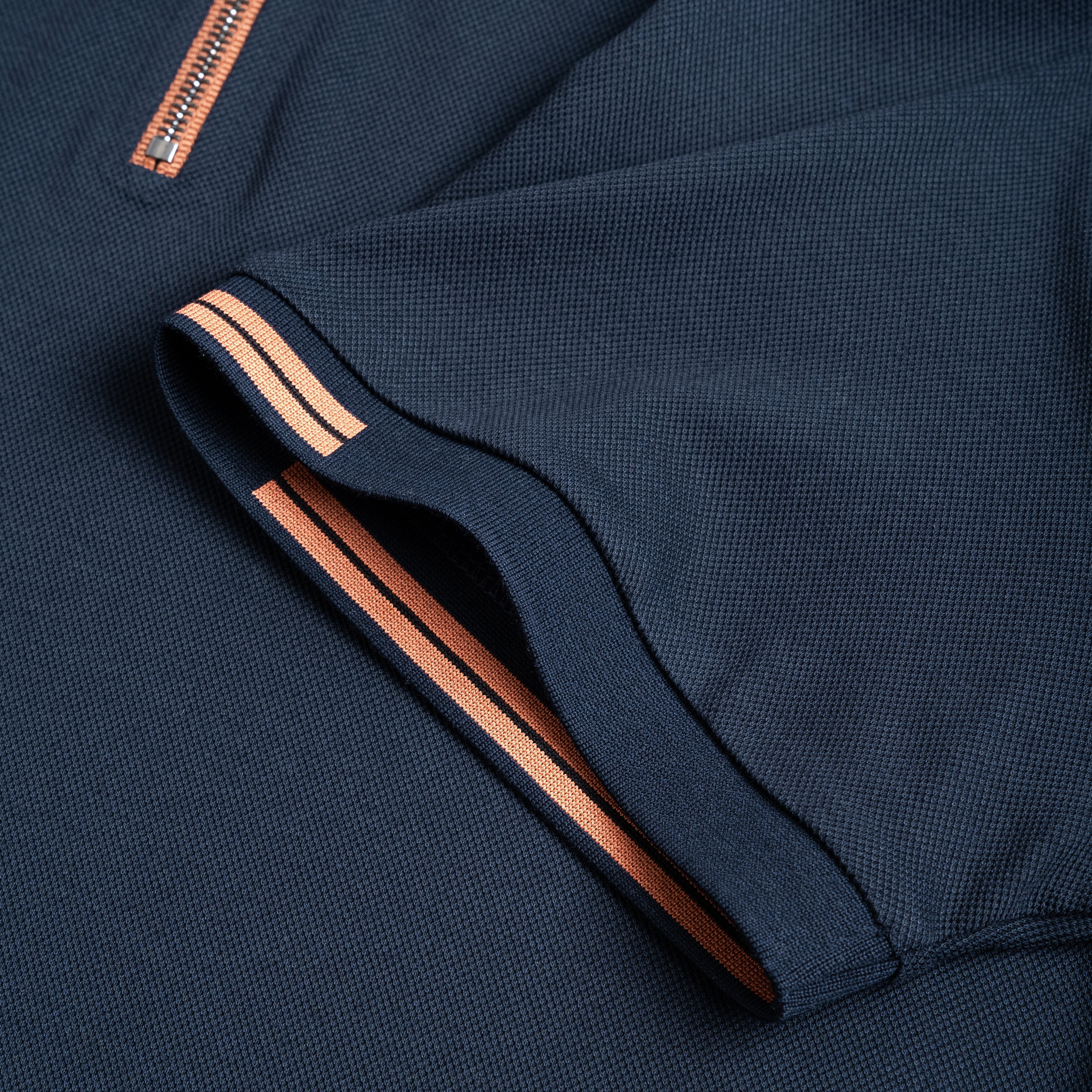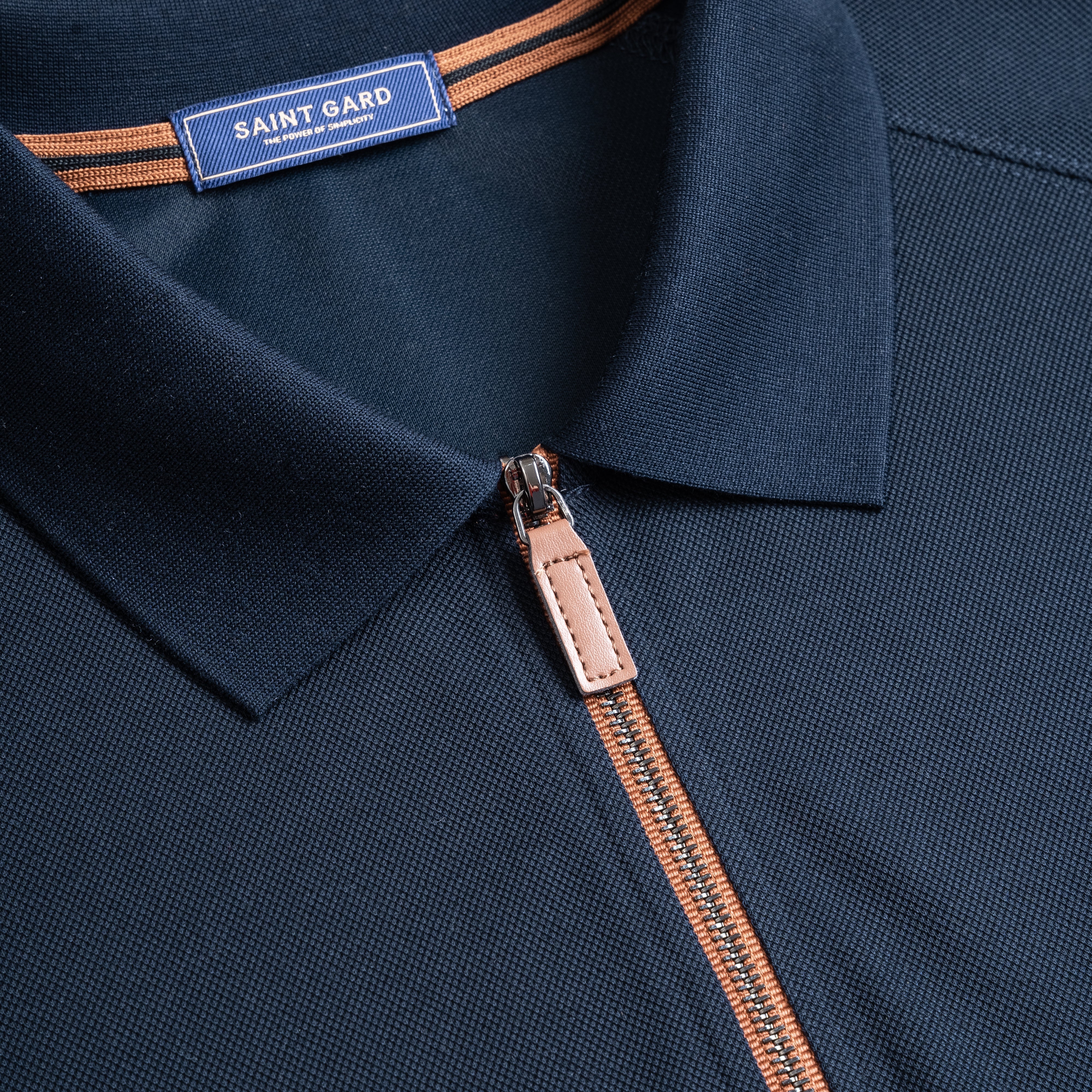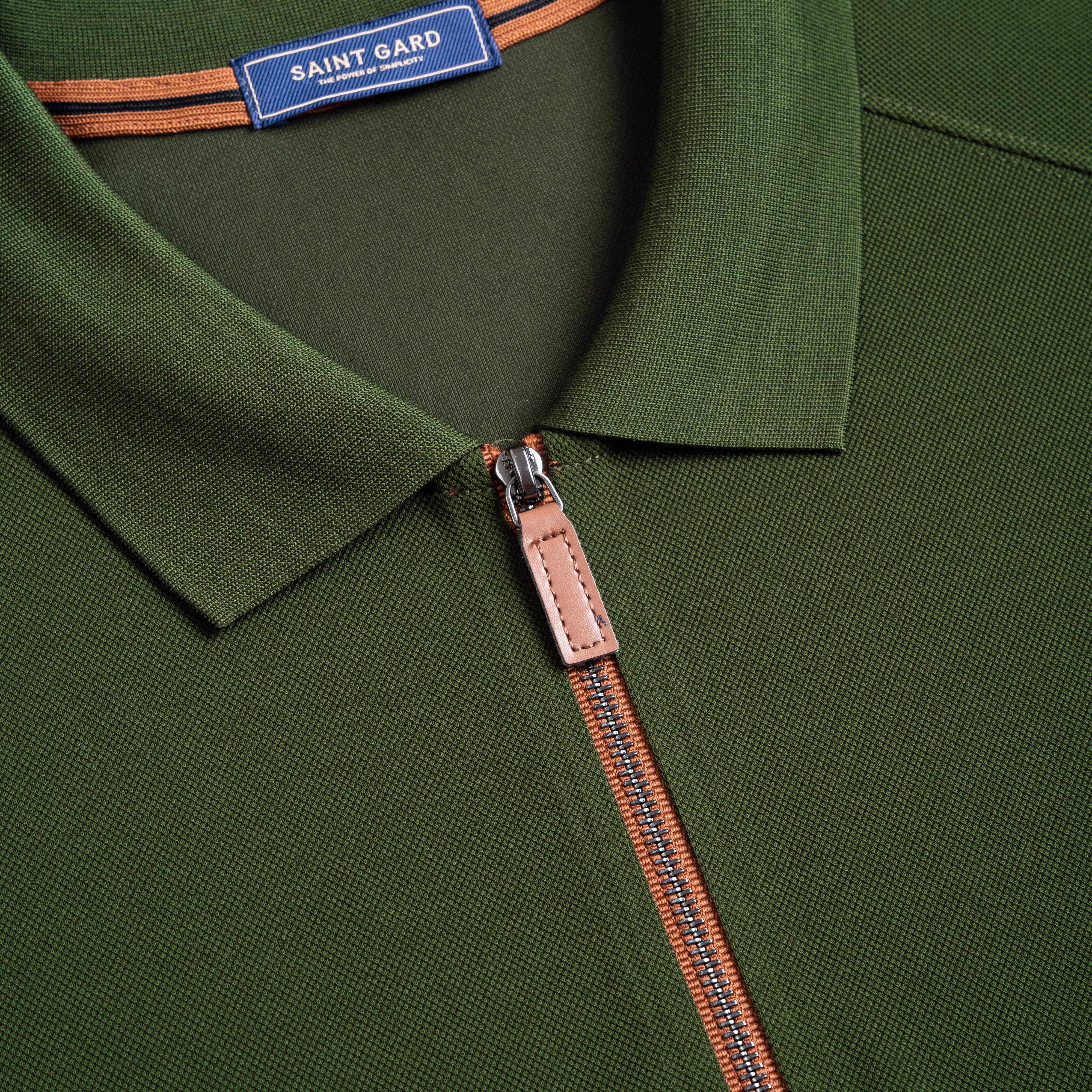 The Zip-Up Knit Polo Shirt blends modern design with premium, eco-friendly materials, delivering a refined yet comfortable look for everyday wear.