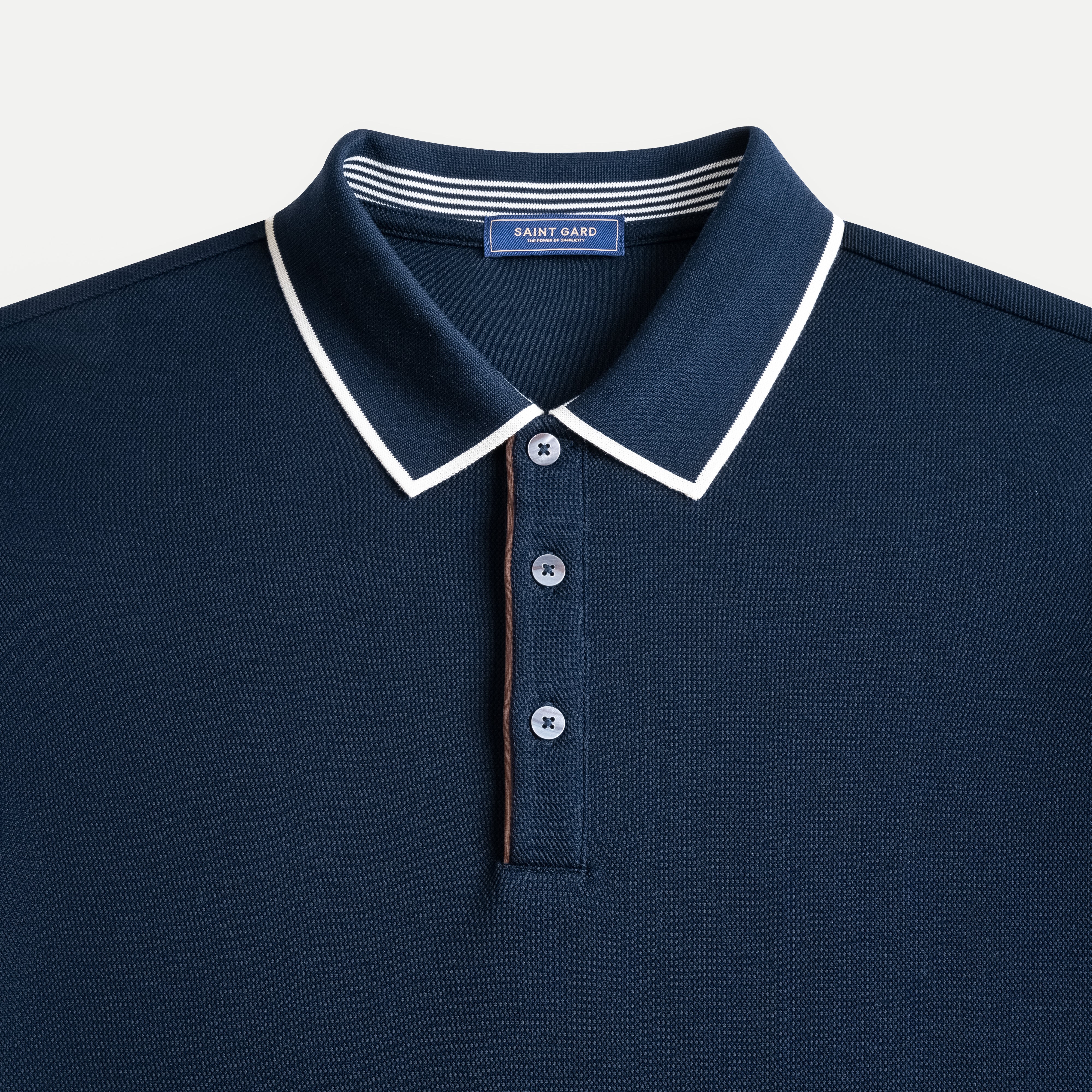 The Knit Polo Shirt with Contrast Trim combines modern design with premium materials, offering a refined yet comfortable look for everyday wear.