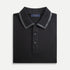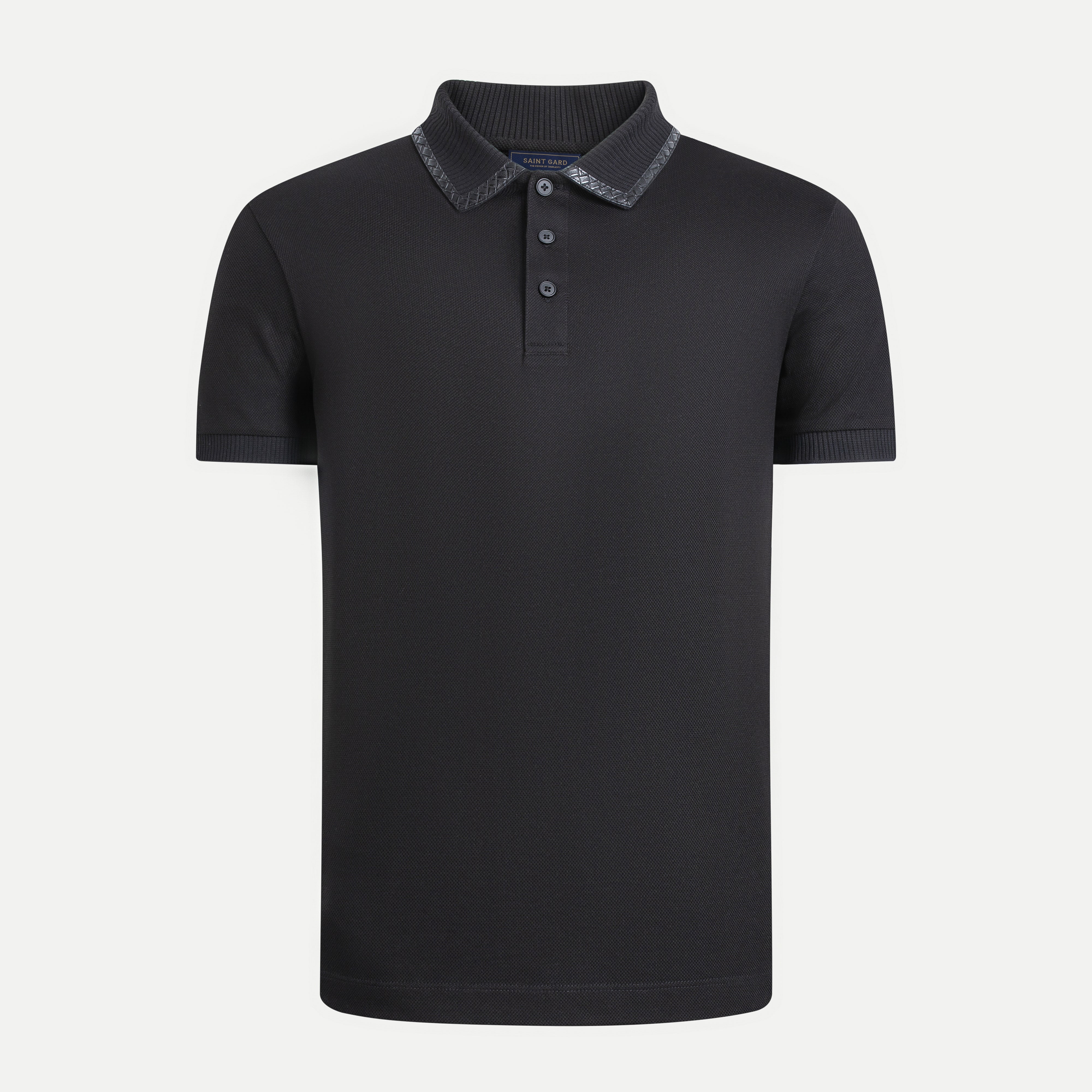 - Classic polo collar with leather trim