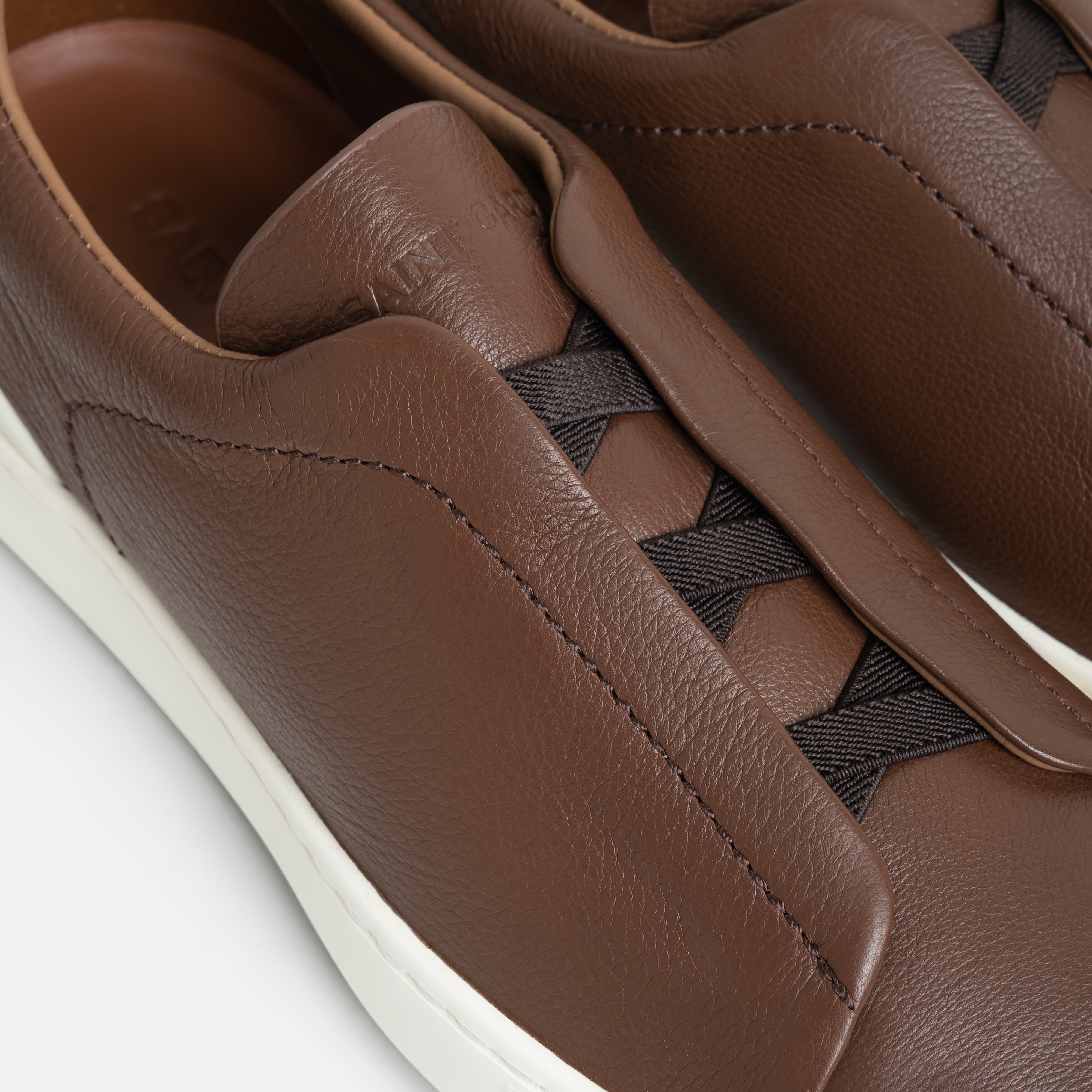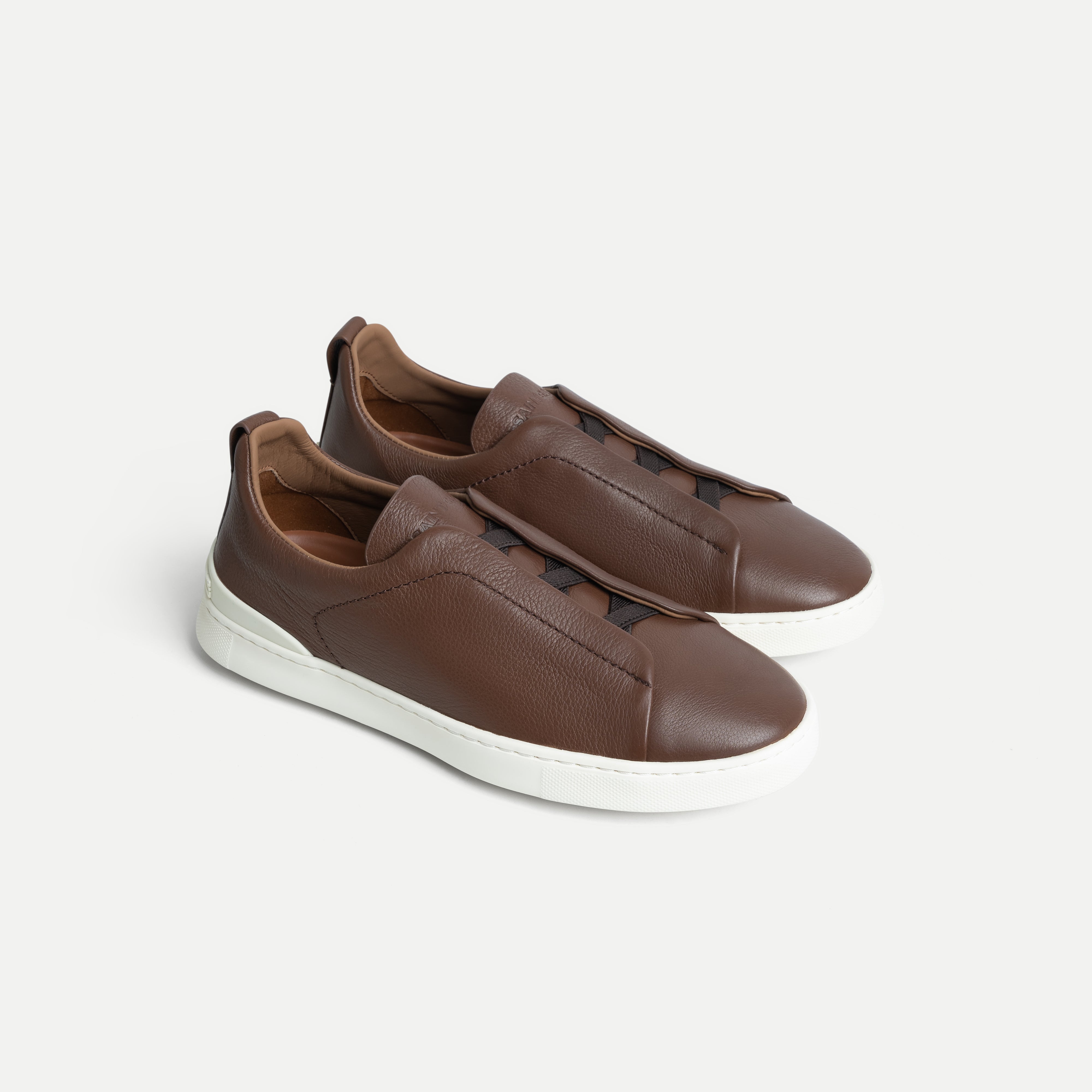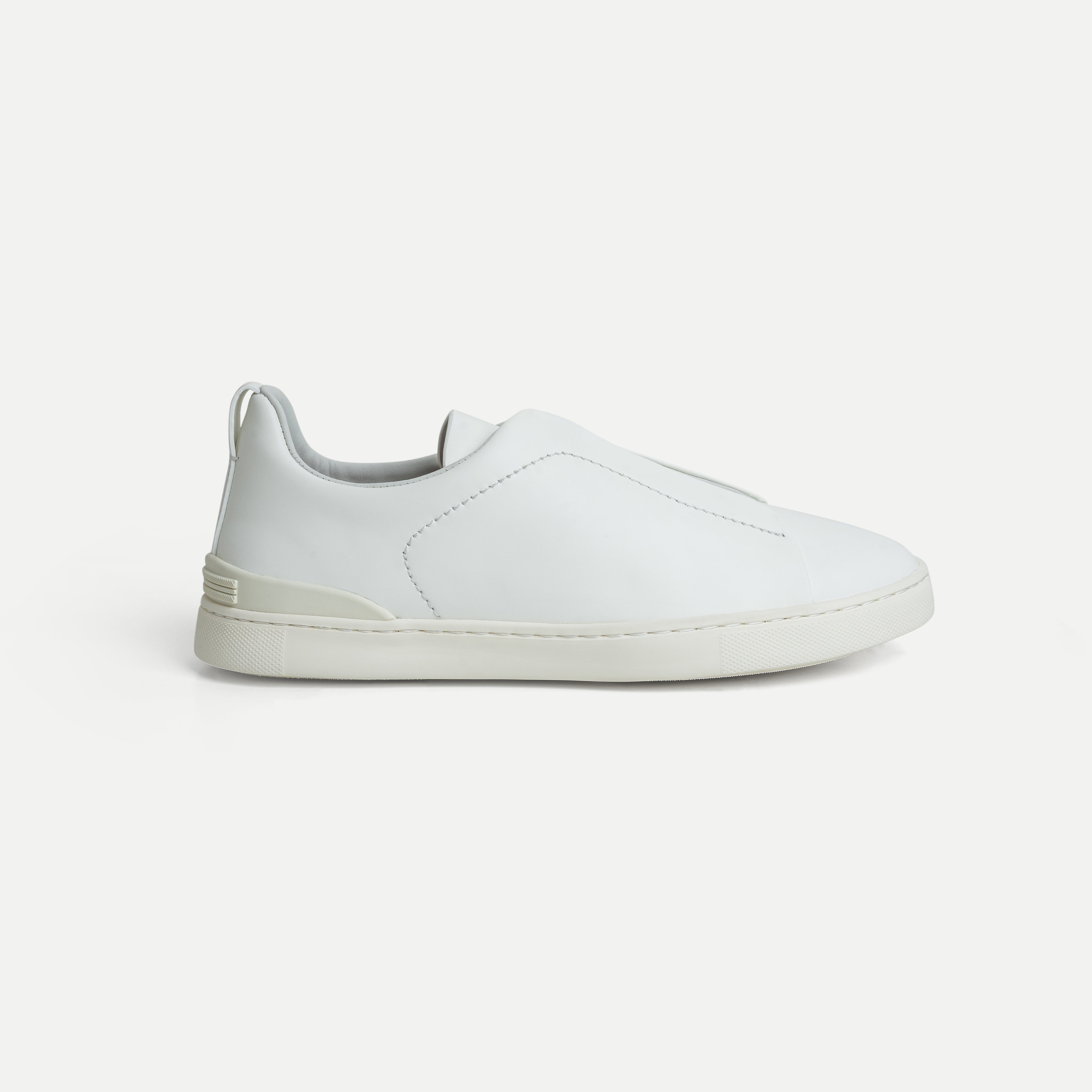 The Triple Stitch Leather Slip-On Shoe is designed with refined detailing that enhances both comfort and functionality. The signature triple stitch construction allows for easy wear while ensuring a secure, comfortable fit. A lightweight and supple upper is seamlessly paired with a clean white rubber sole, creating a modern yet elegant silhouette.