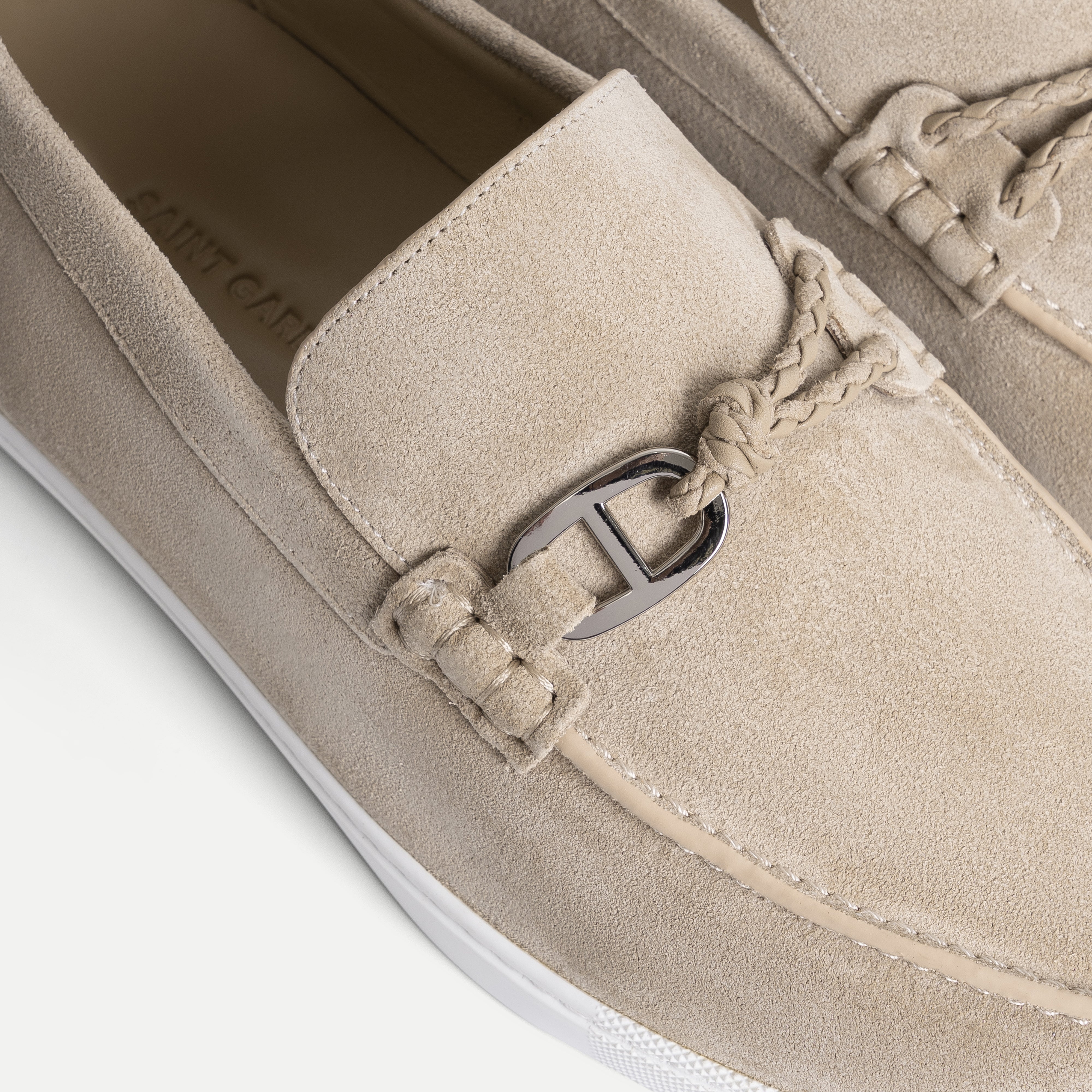 Featuring a rounded toe and a lightweight white rubber outsole, the shoes provide all-day comfort while maintaining a clean, contemporary profile. Crafted from premium suede with a soft calf-leather lining, each pair is carefully finished by skilled craftsmen for lasting quality and wearability.