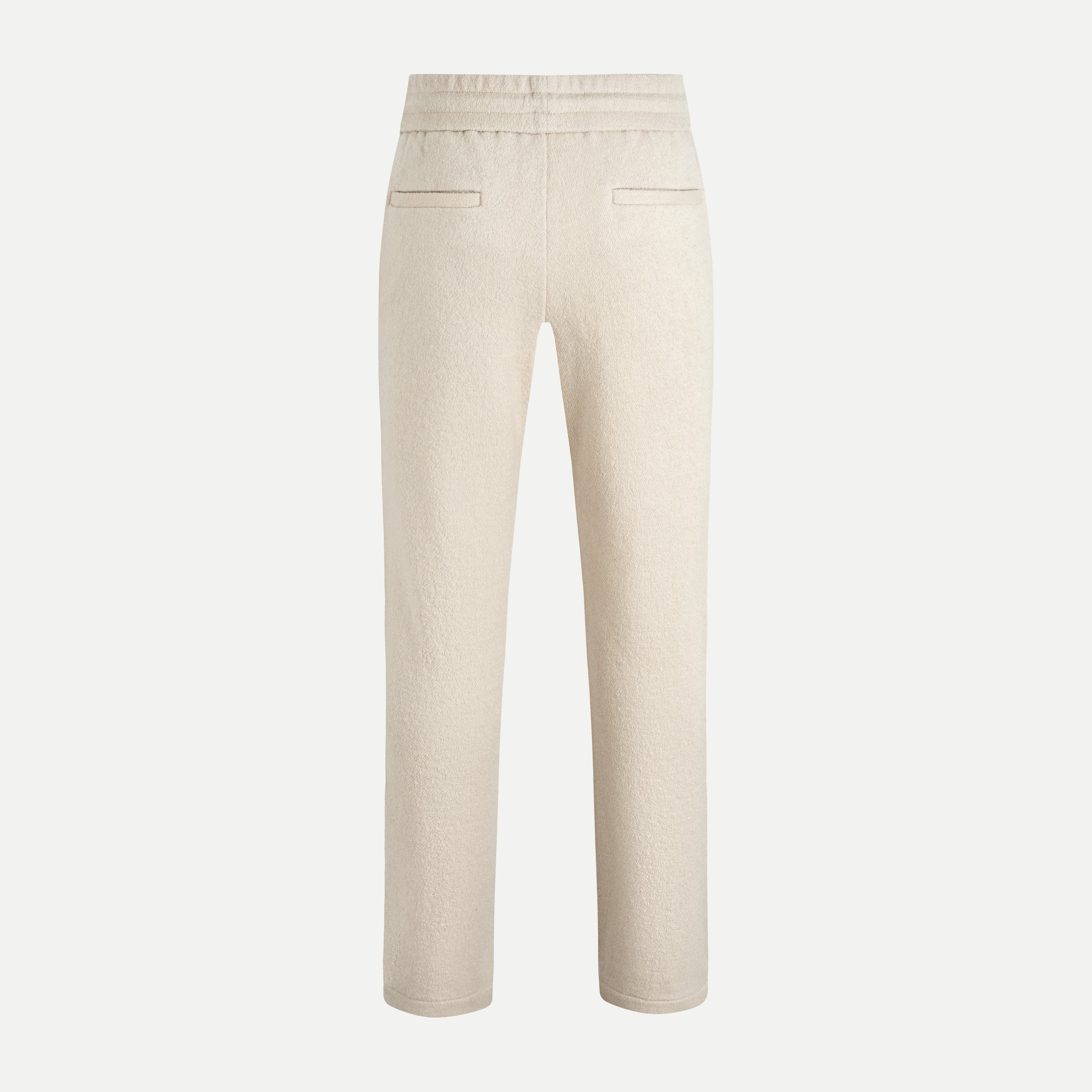 Designed in a straight-leg Regular Fit, these trousers deliver a clean, relaxed silhouette that feels both comfortable and refined. The elastic waistband with an adjustable drawstring ensures flexibility and an easy fit throughout the day. Finished with two slanted front pockets and two patch back pockets, the design stays minimal yet highly functional—perfect for elevated daily wear.