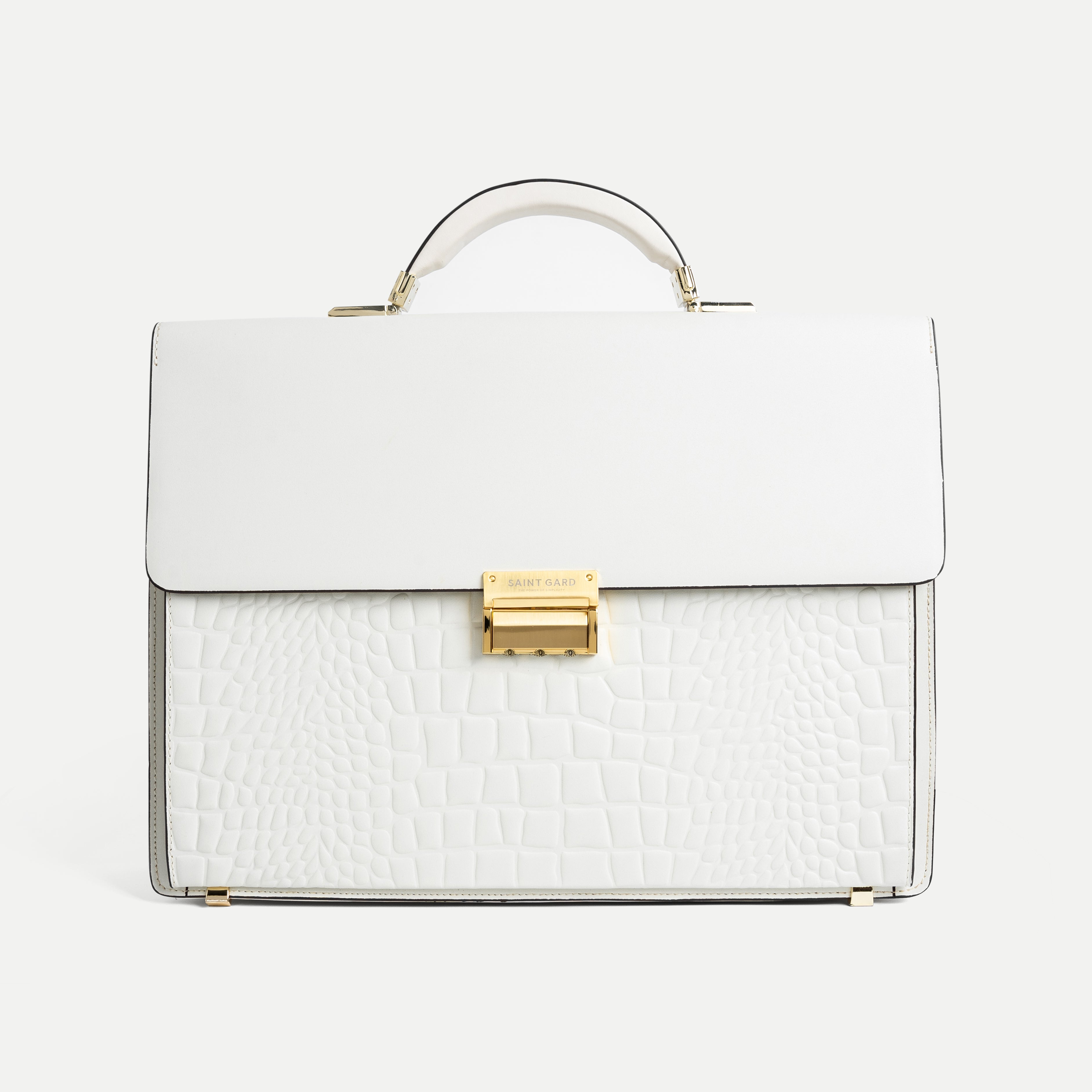 The Textured Leather Briefcase features a refined, structured design with a secure flap closure and integrated combination lock, delivering a polished and professional appearance. Finished with a single top handle, this briefcase is designed for confident daily use in business and formal settings.