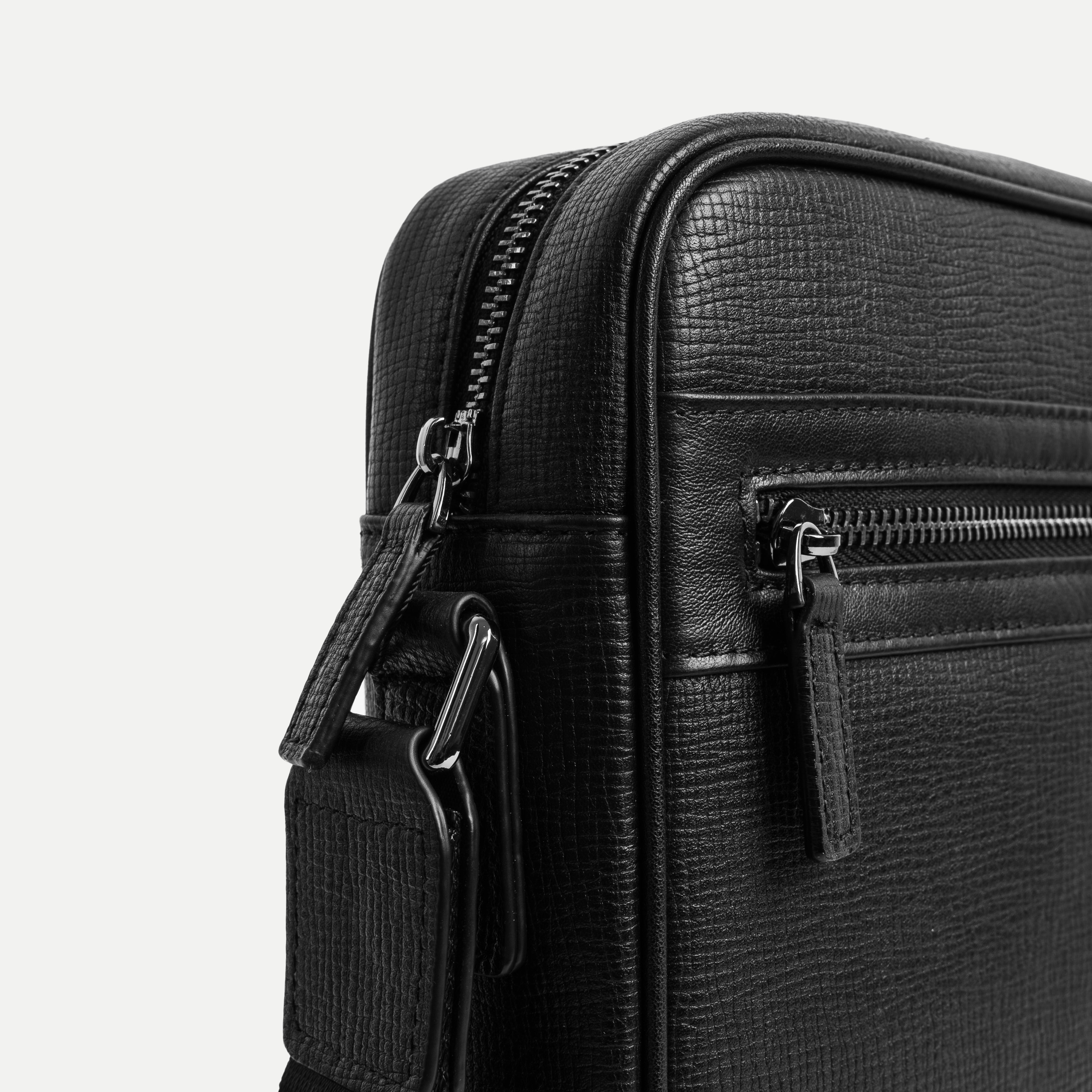 The Leather Crossbody Bag features a clean, functional design with a secure zip-closure main compartment, offering practicality while maintaining a refined, minimalist aesthetic. An adjustable shoulder strap allows for a customizable fit, ensuring comfort and ease of wear throughout the day.