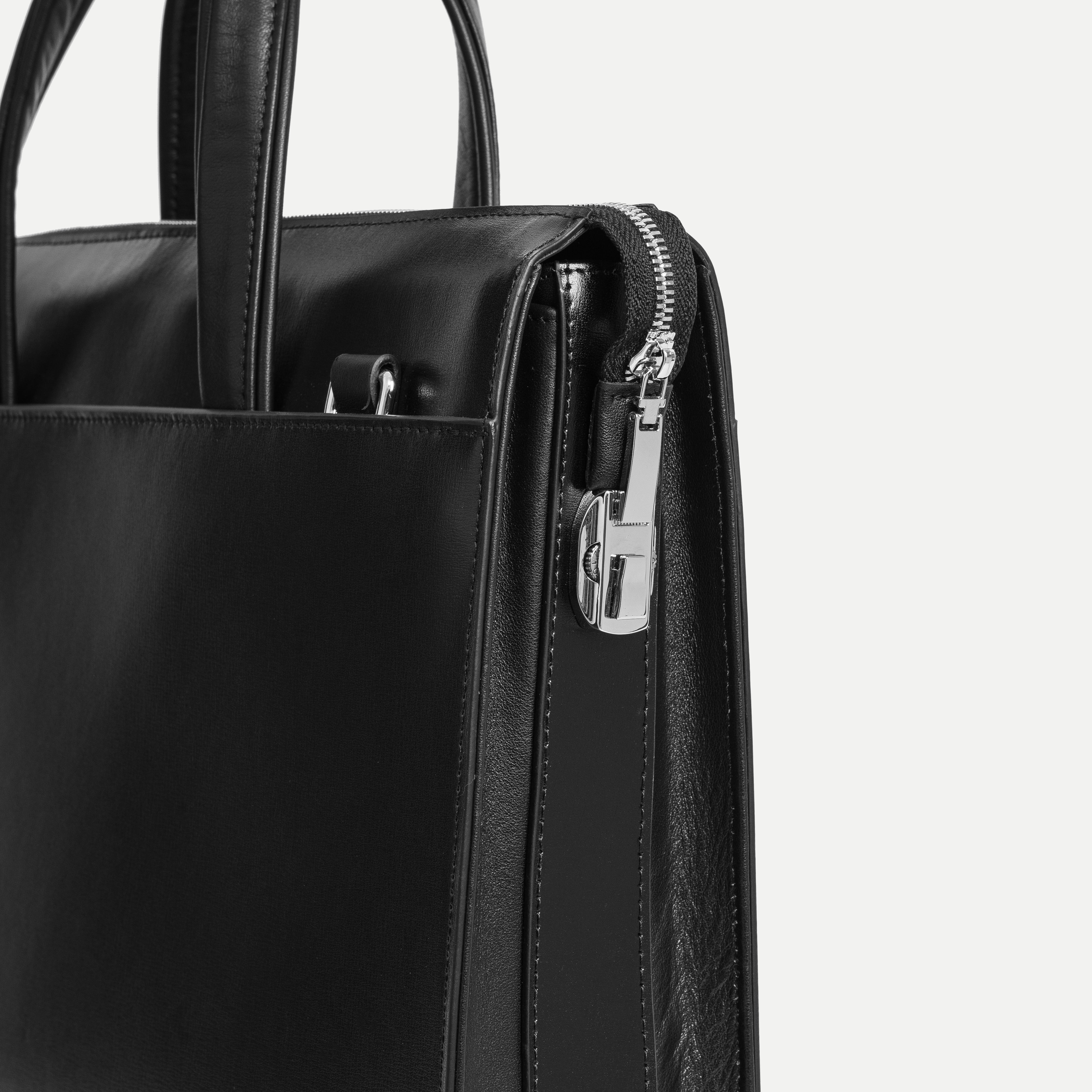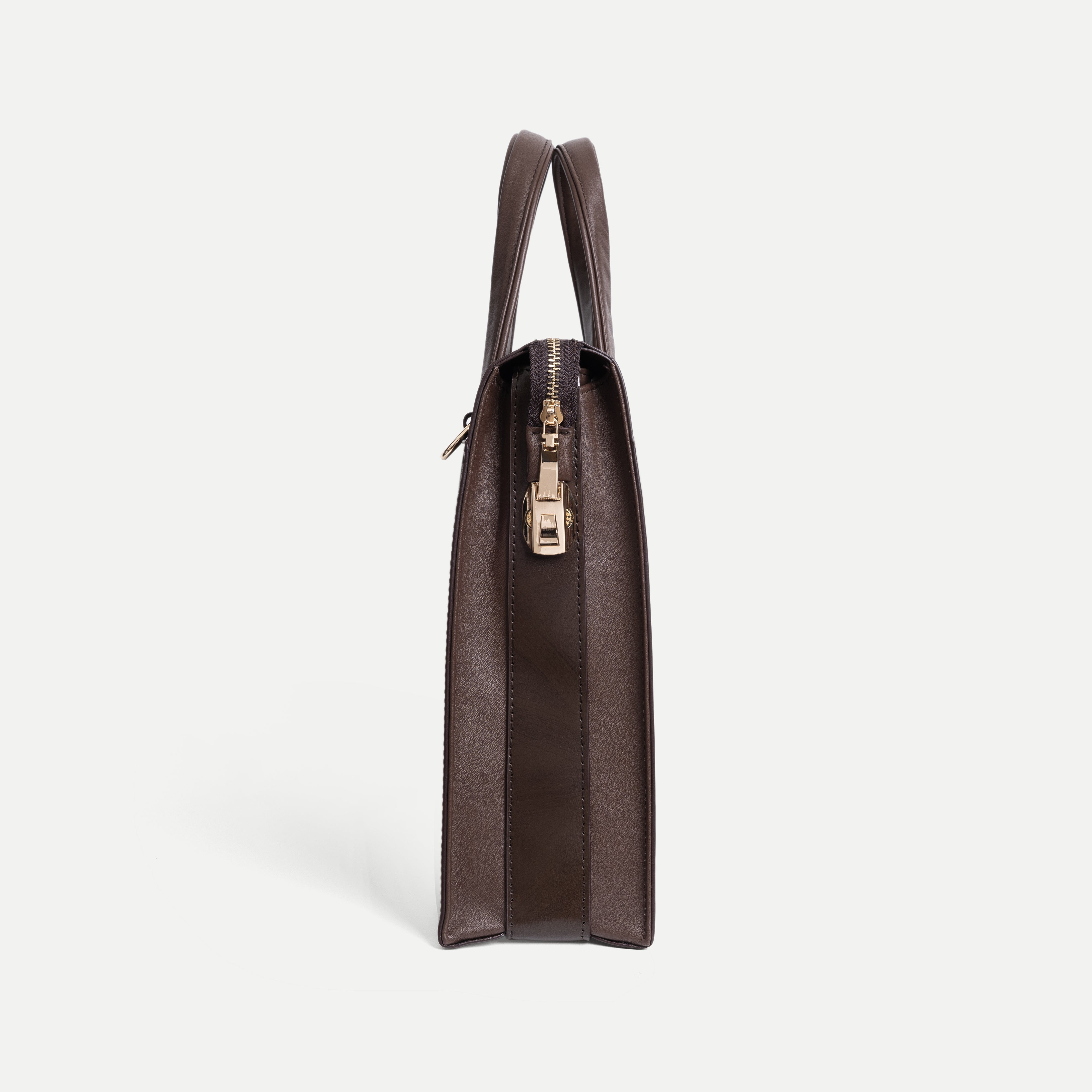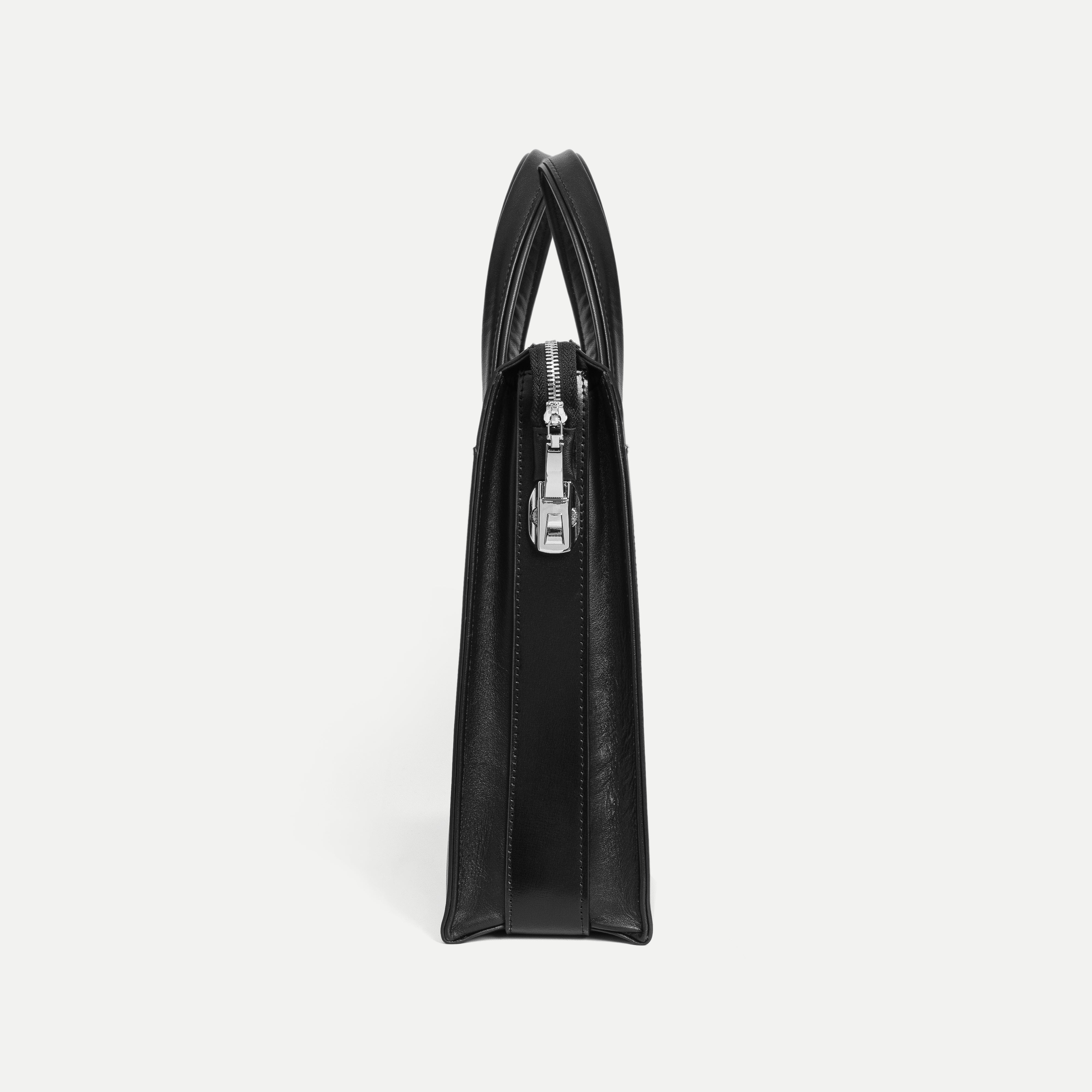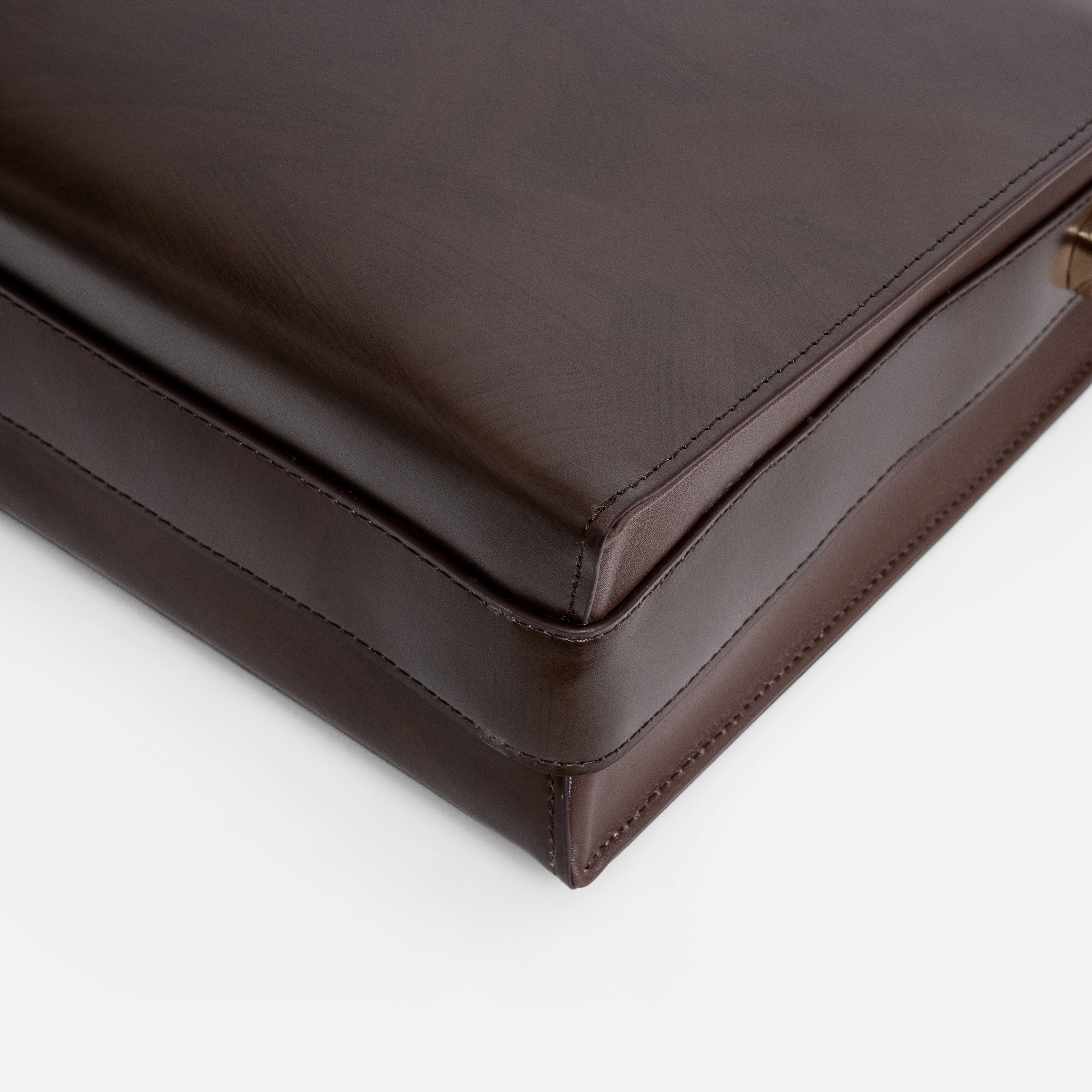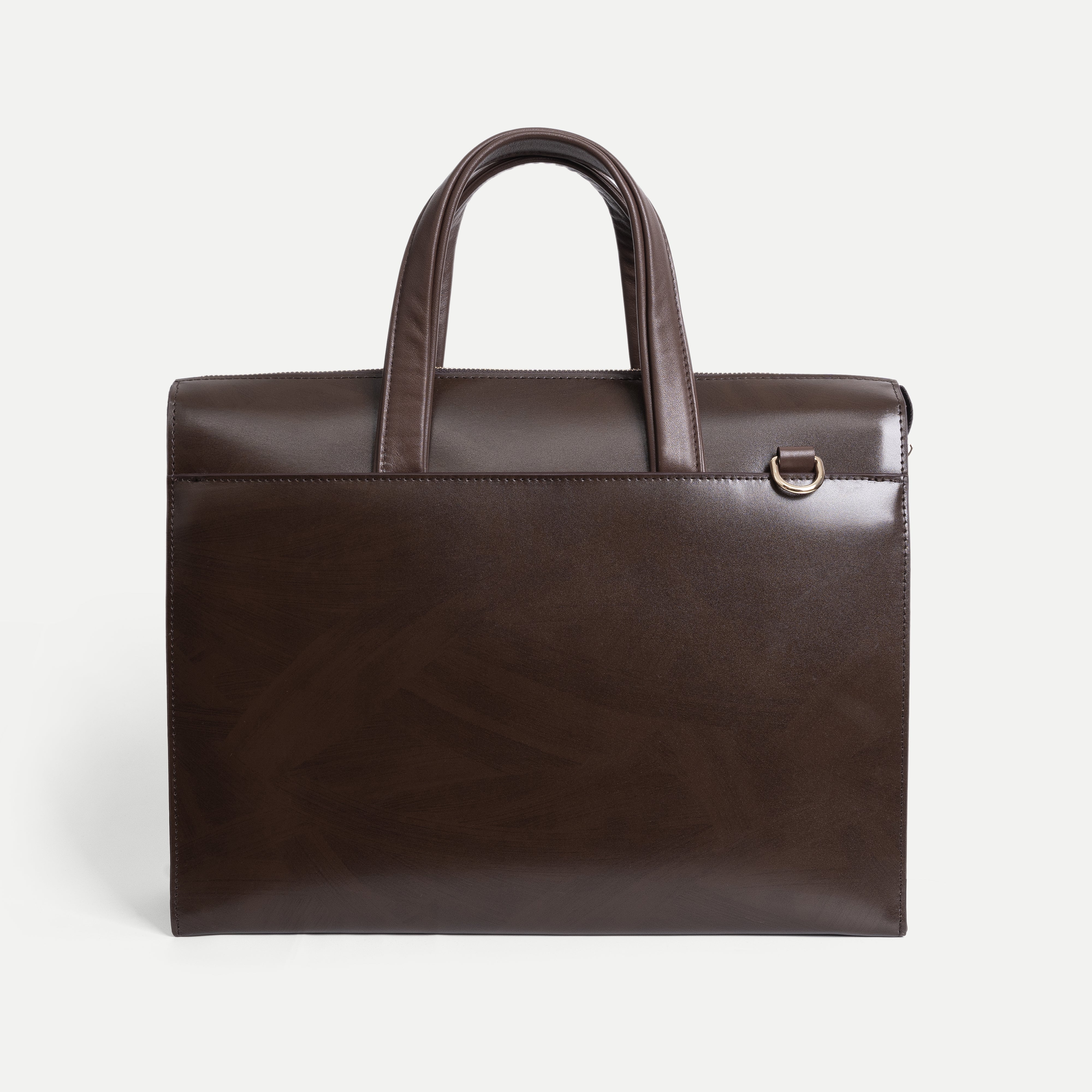 The Smooth Leather Briefcase features a minimalist, modern design defined by clean lines and softly rounded edges. Carefully finished stitching enhances its refined silhouette, delivering a professional appearance that feels contemporary and understated.