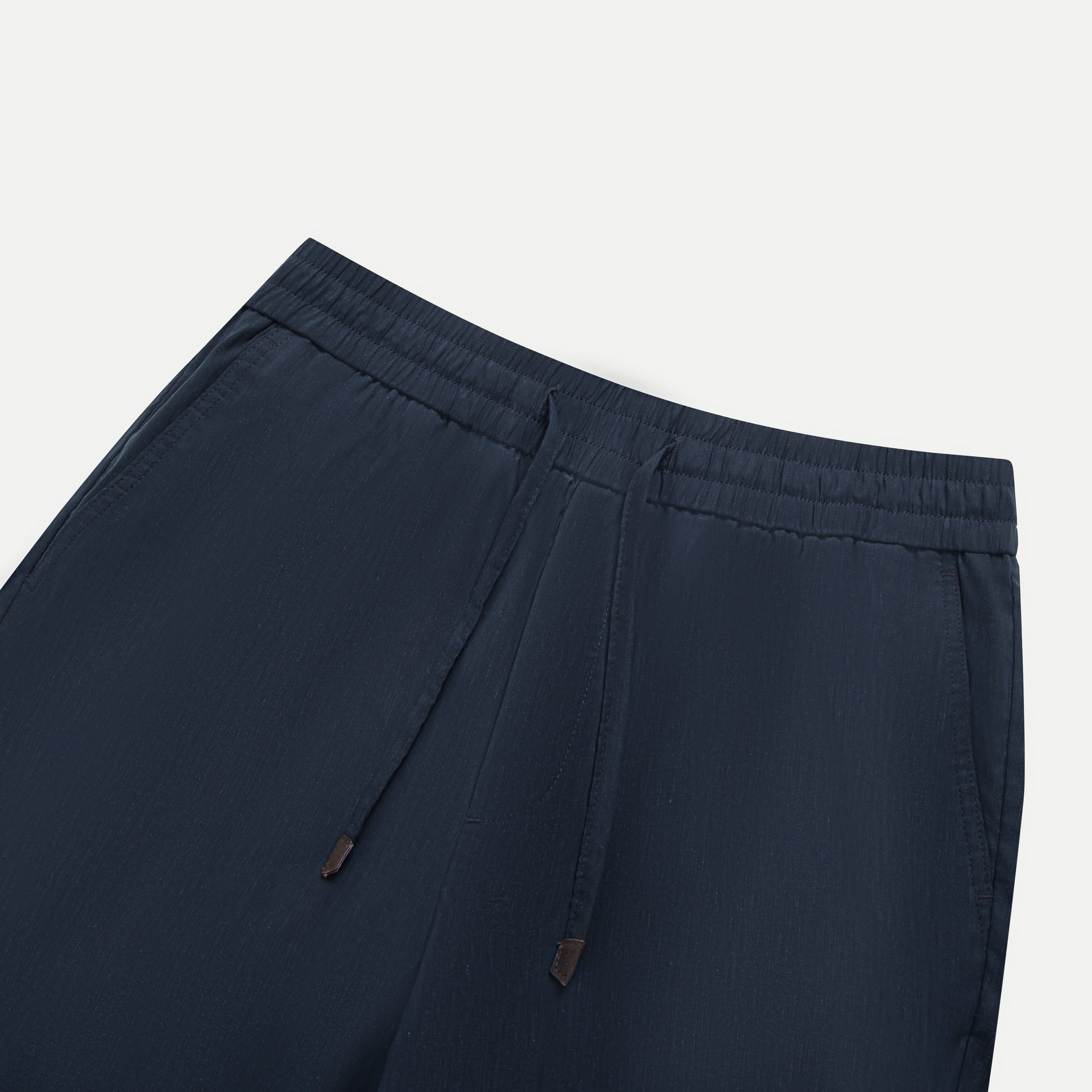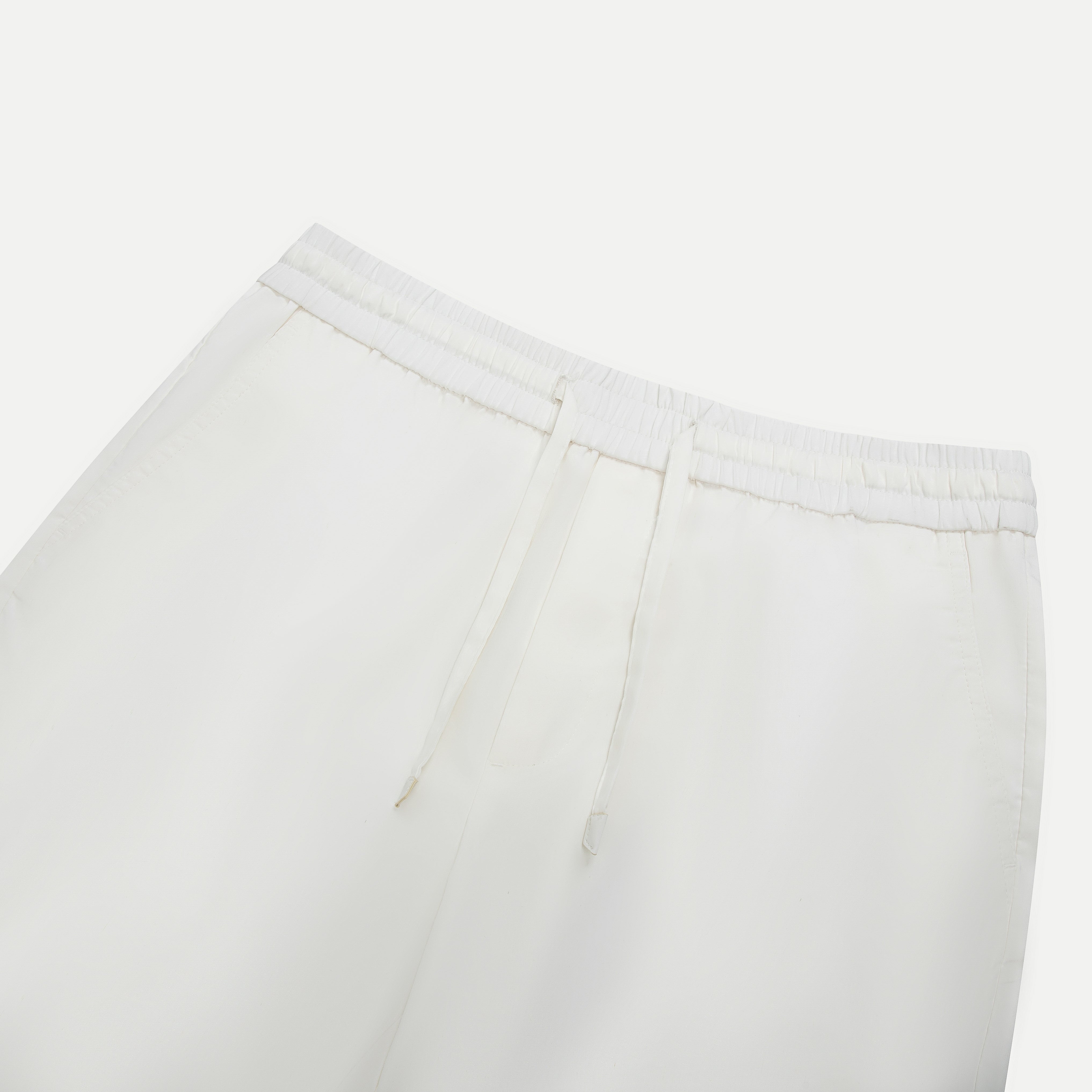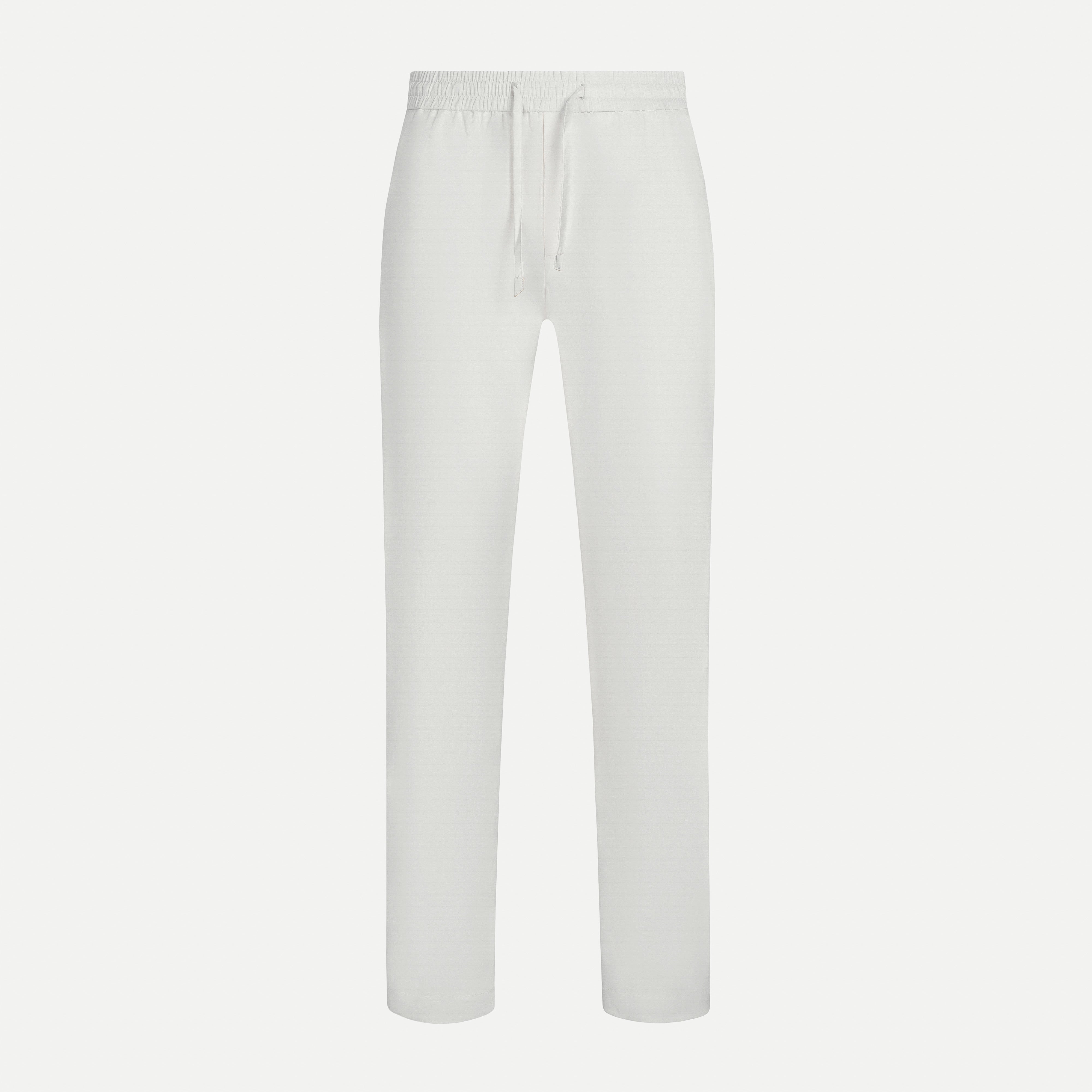 Designed with an elastic waistband and adjustable drawstring, slanted side pockets, and refined back welt pockets, this pair is easy to style in both work and everyday settings. The neutral tone makes it a versatile essential for smart-casual wardrobes.
