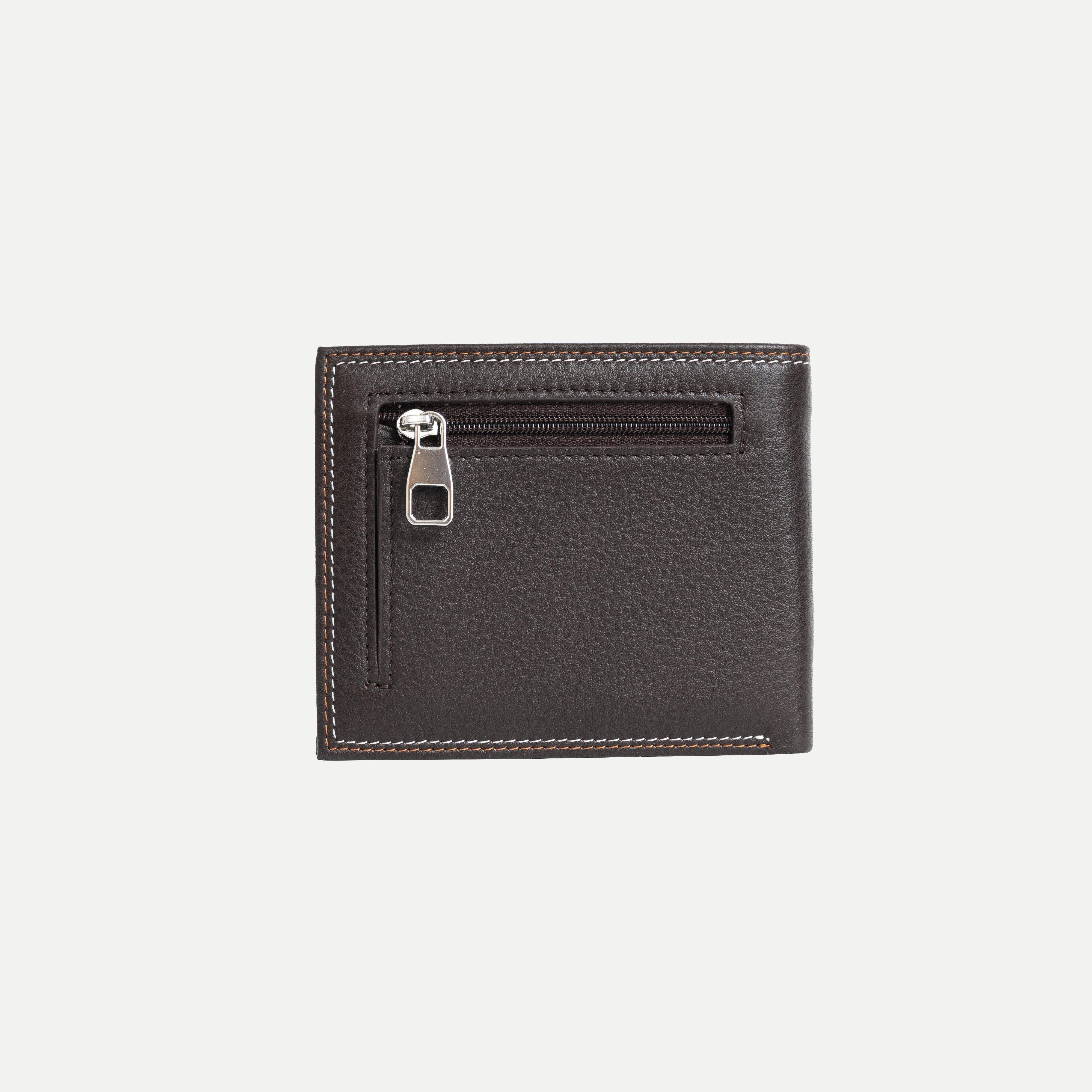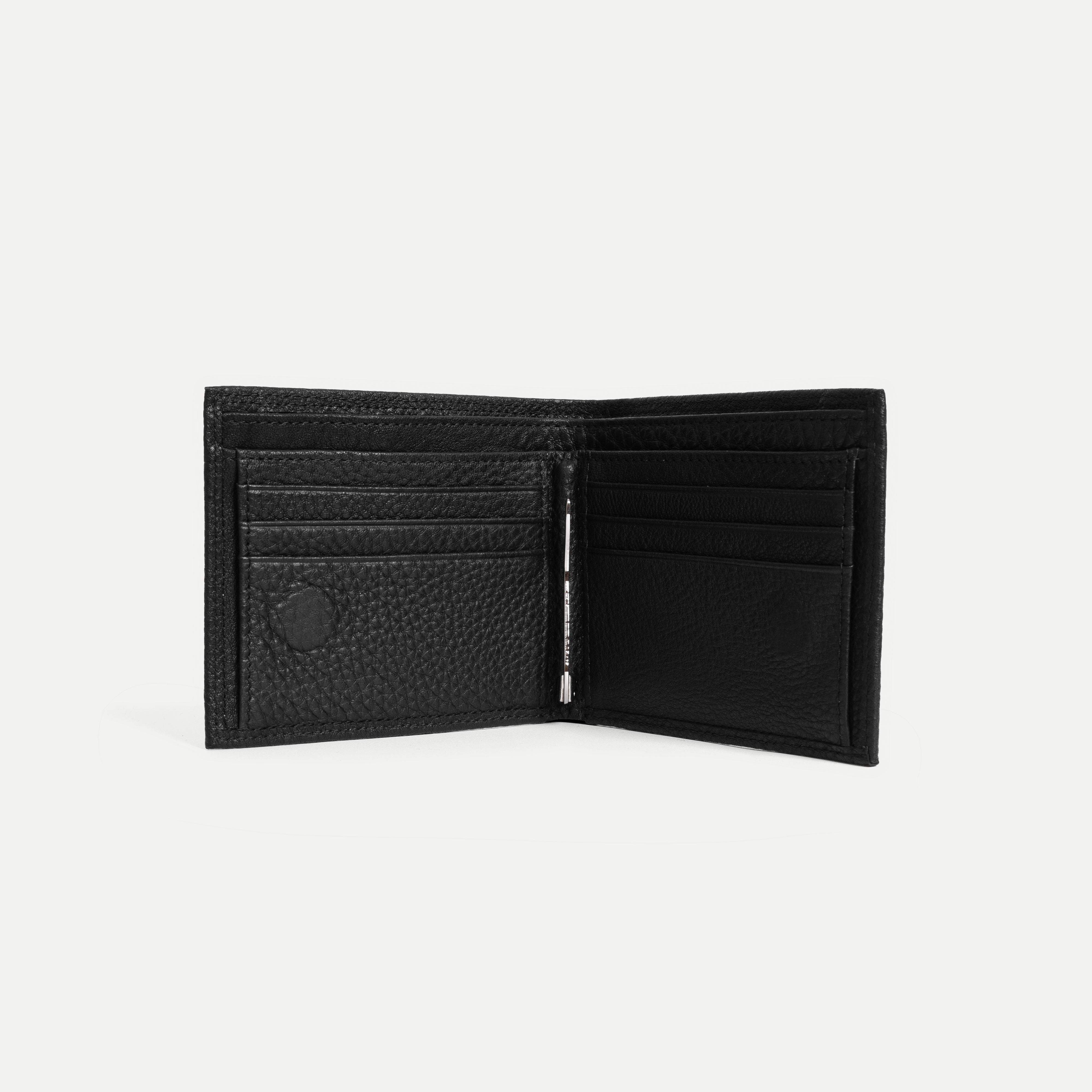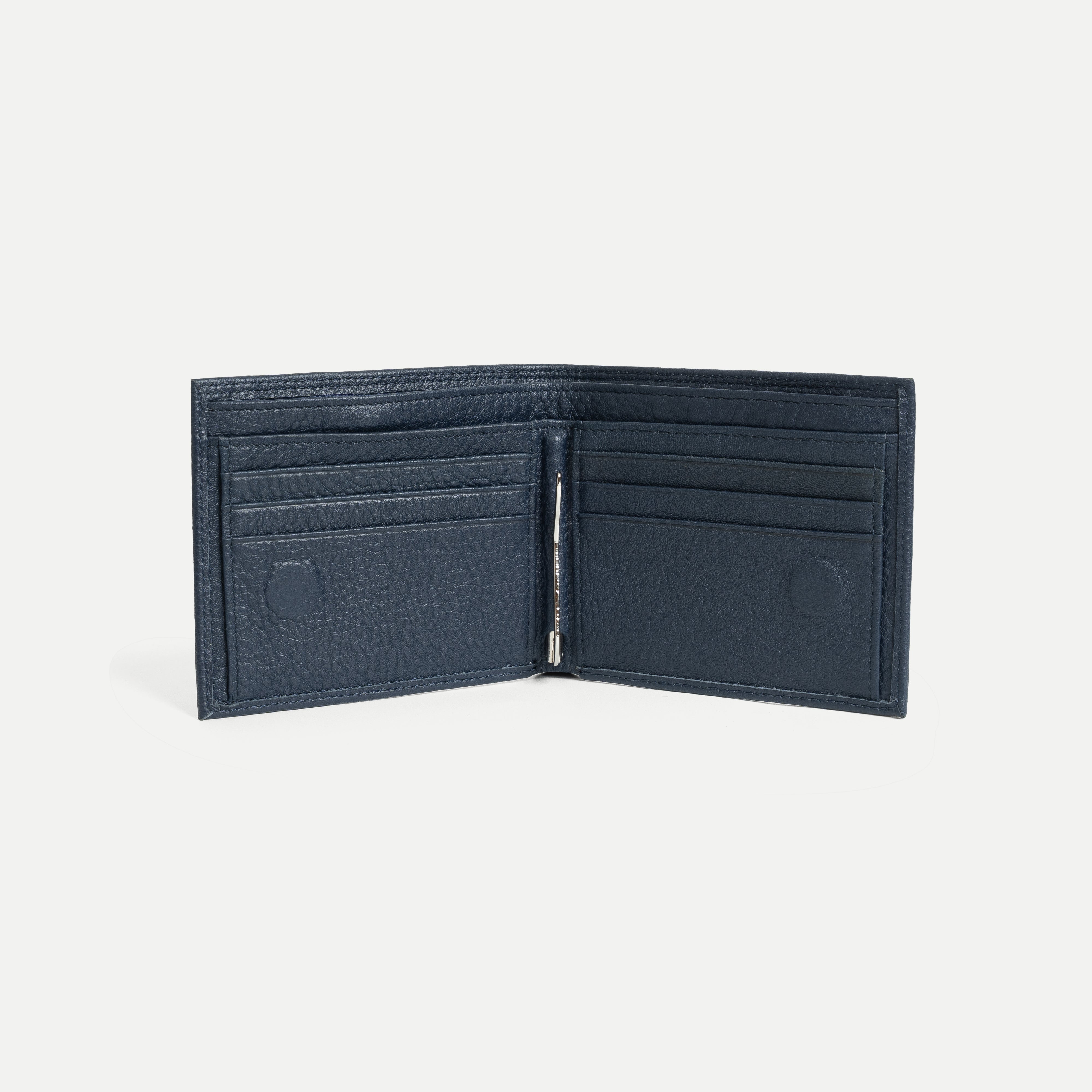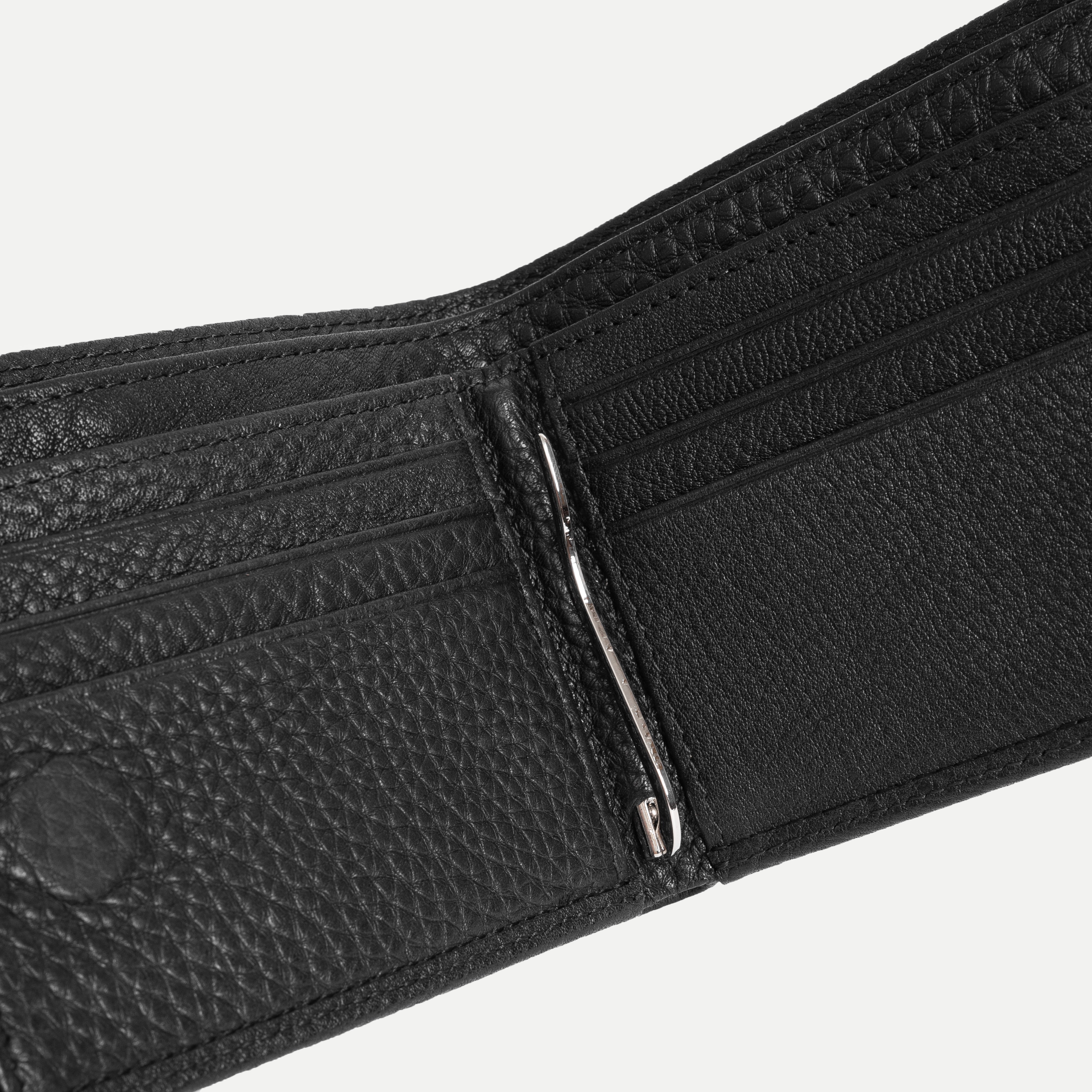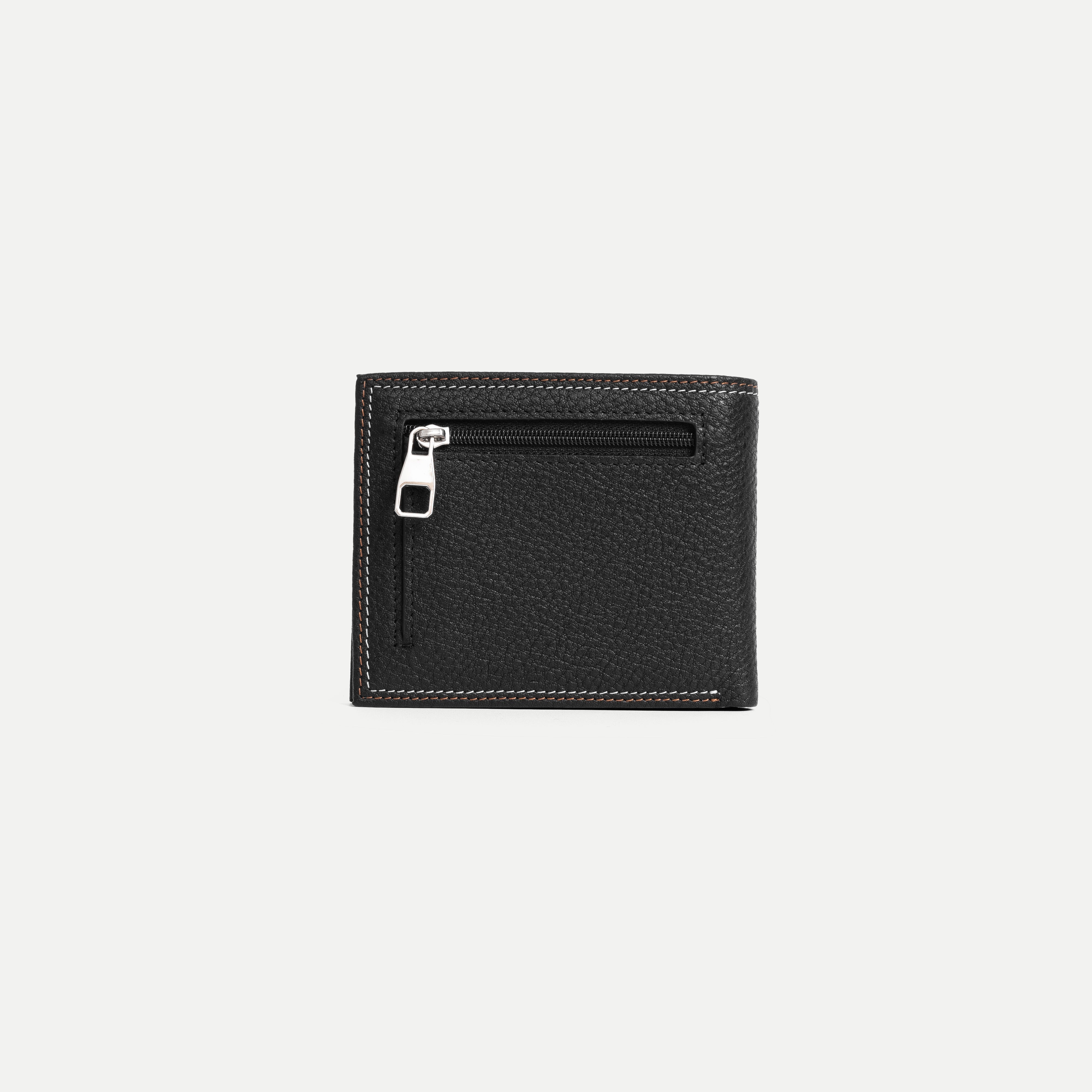 An exterior zip pocket provides quick access for coins or small items, while the interior is equipped with multiple card slots and a secure metal money clip to keep cash neatly in place. Its balanced design delivers functionality without compromising a refined, minimalist appearance.a